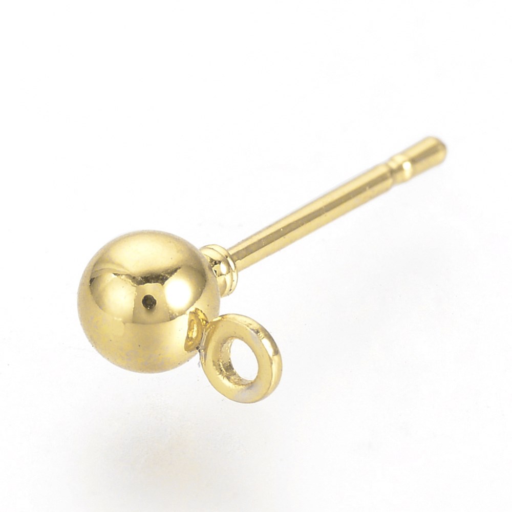 10 Ohrstecker aus Eisen goldfarben mit Kugel und Anhängeröse und weichem Ohrstopper 6,5 x 4 mm