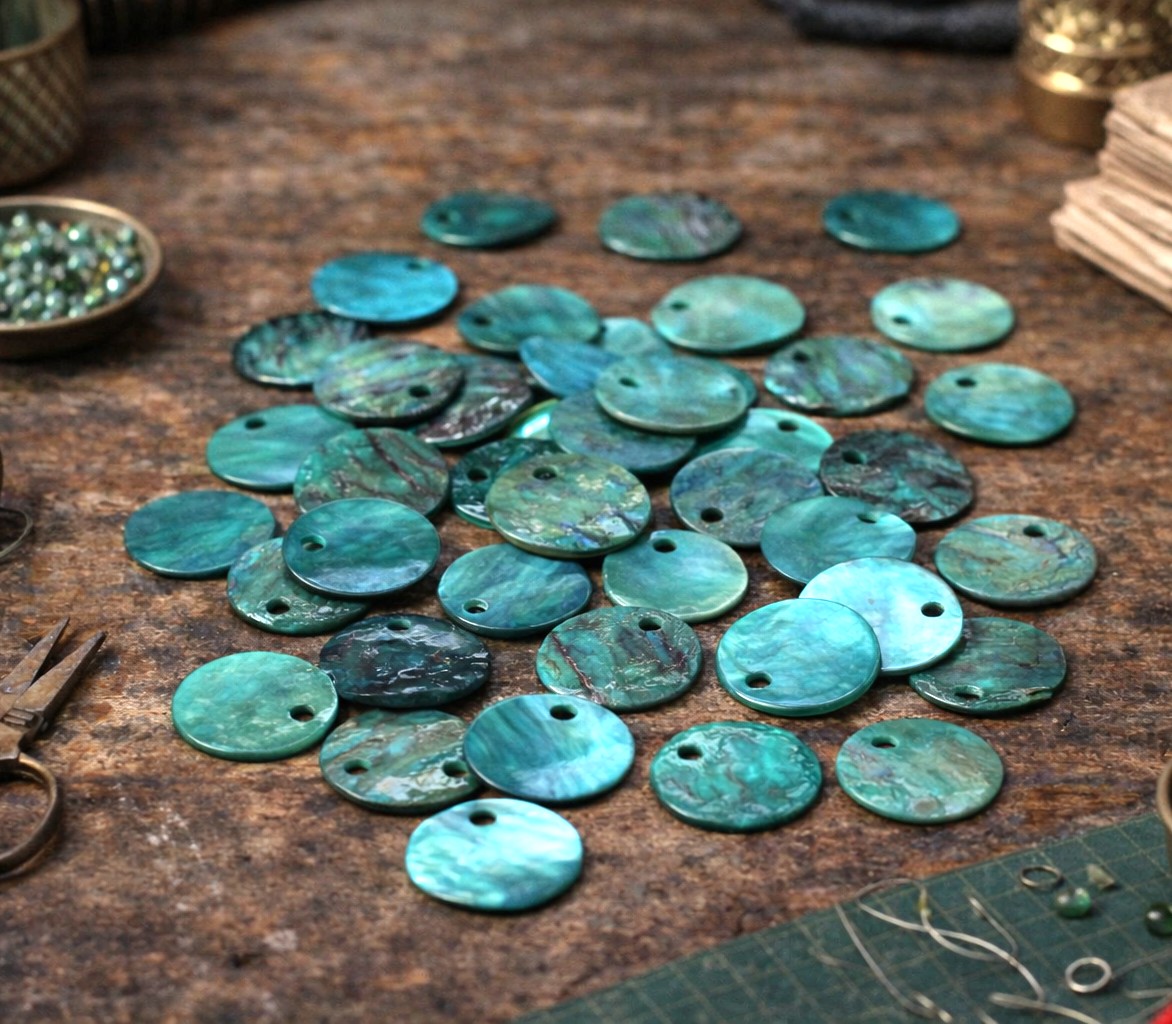 20 grüne Muschel Perlmutt Anhänger 12 mm x 1 mm