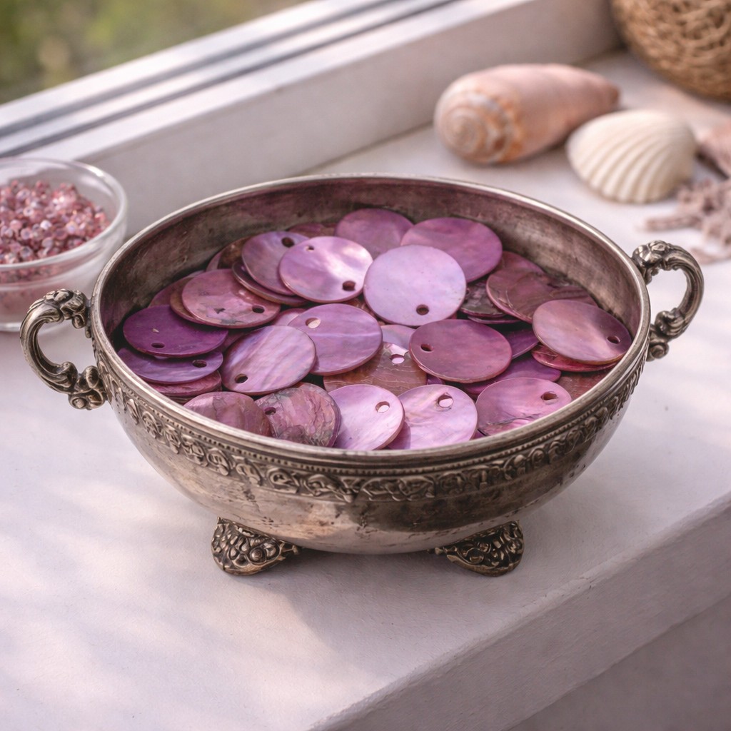 Zart schimmerndes Muschel-Perlmutt, das das Licht in sanften Farben einfägt. Sie erzählen von Sonne, Wasser und Leichtigkeit.