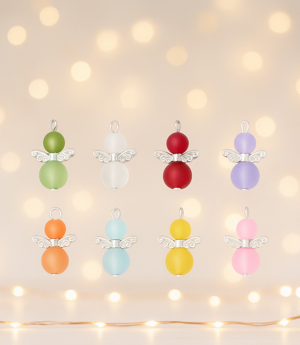8 Engel Charms Geschenkanhänger Schutzengel matte Glasperlen 20,5 x 14,5 x 8,5 mm