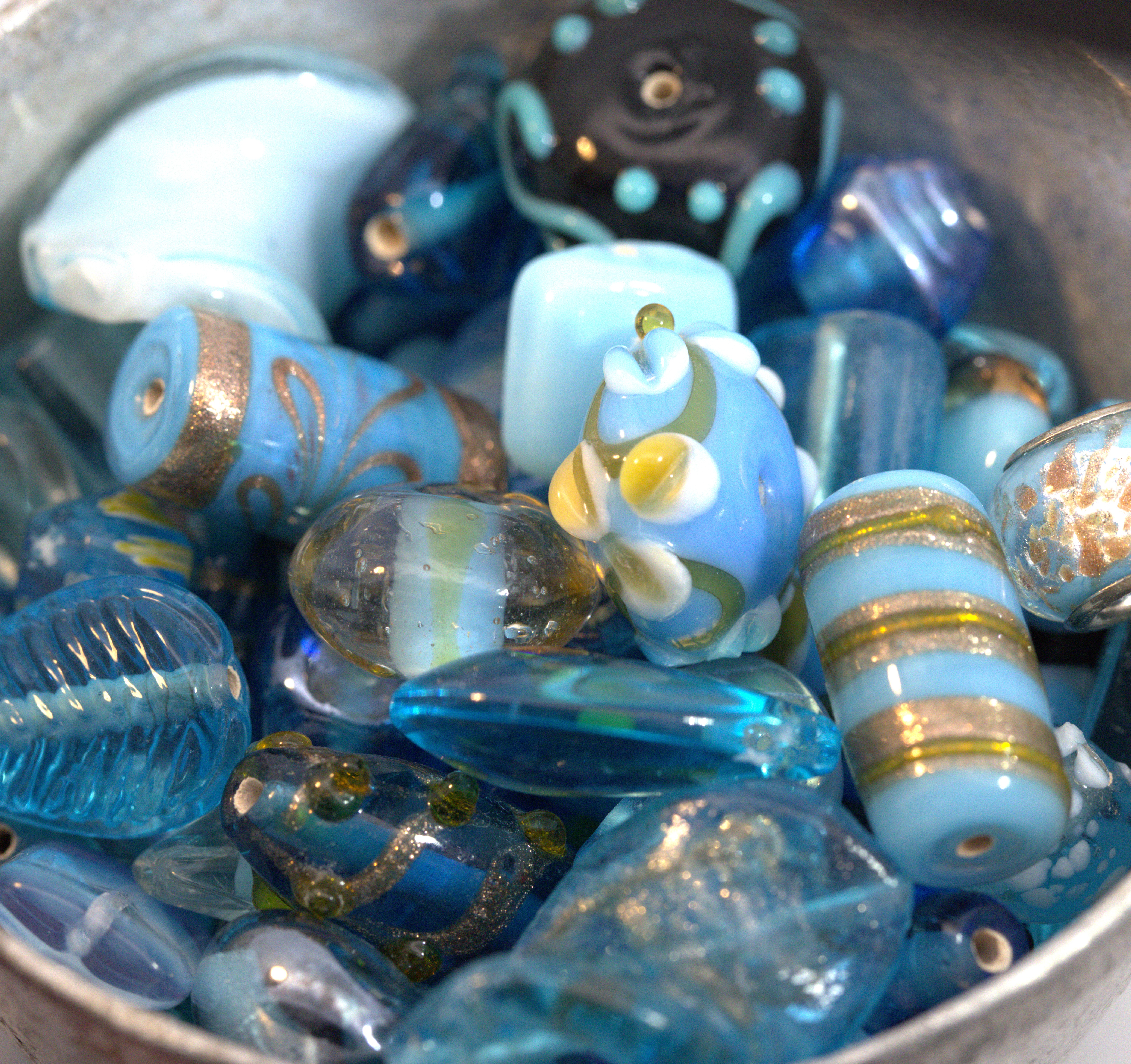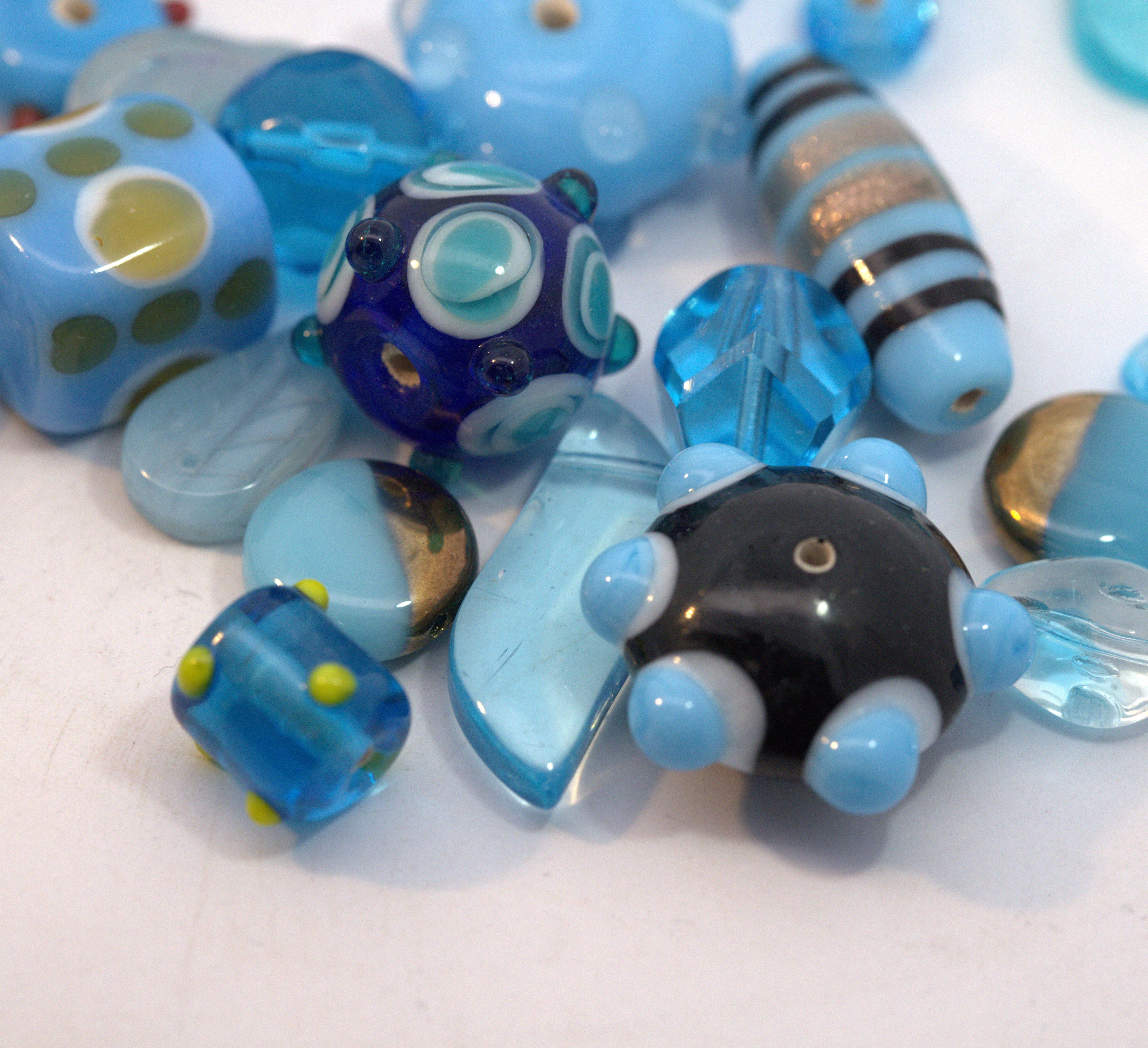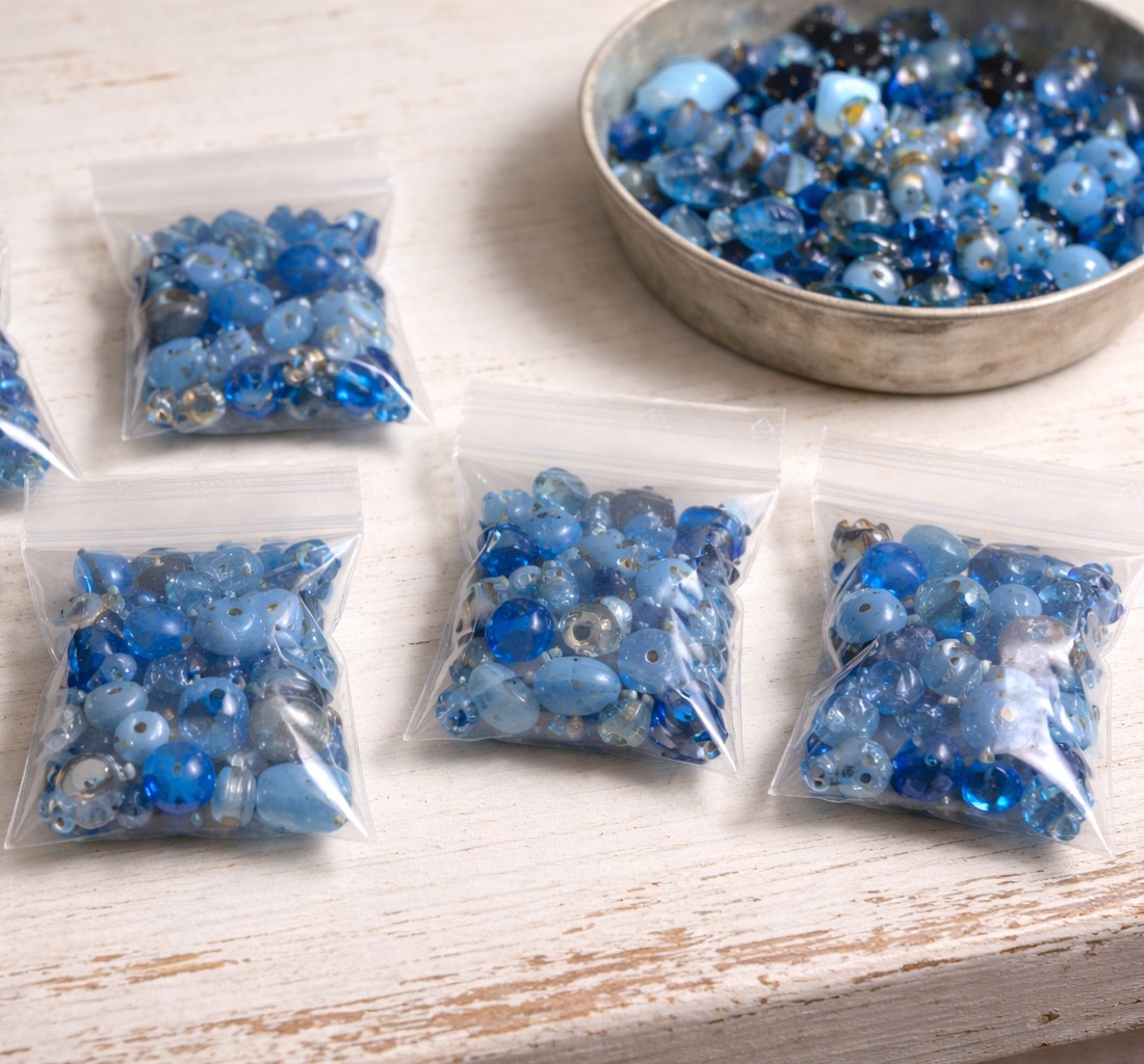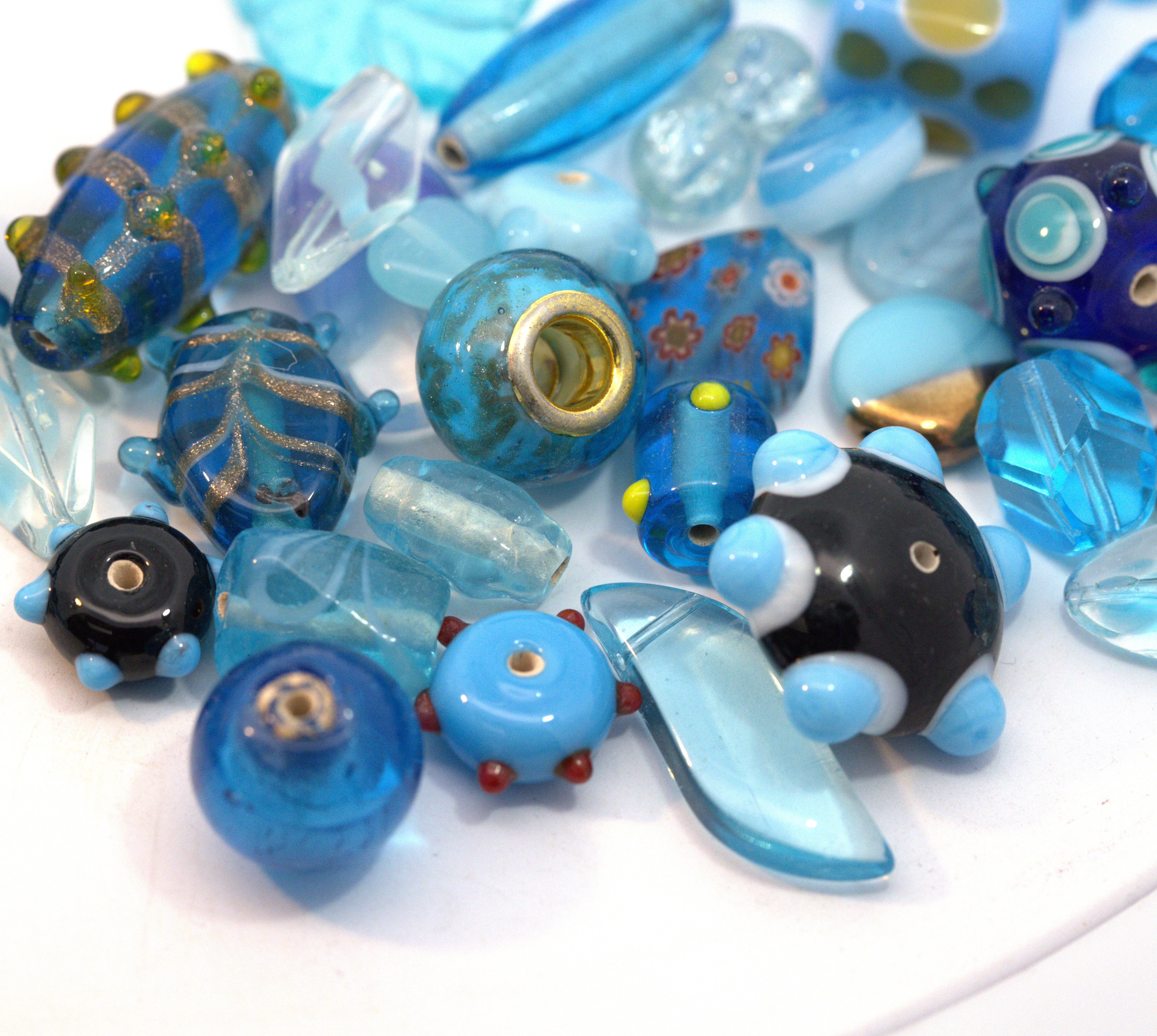 Böhmische Lampwork und Glasperlen 50 Gramm Überraschungsbeutel himmelblau