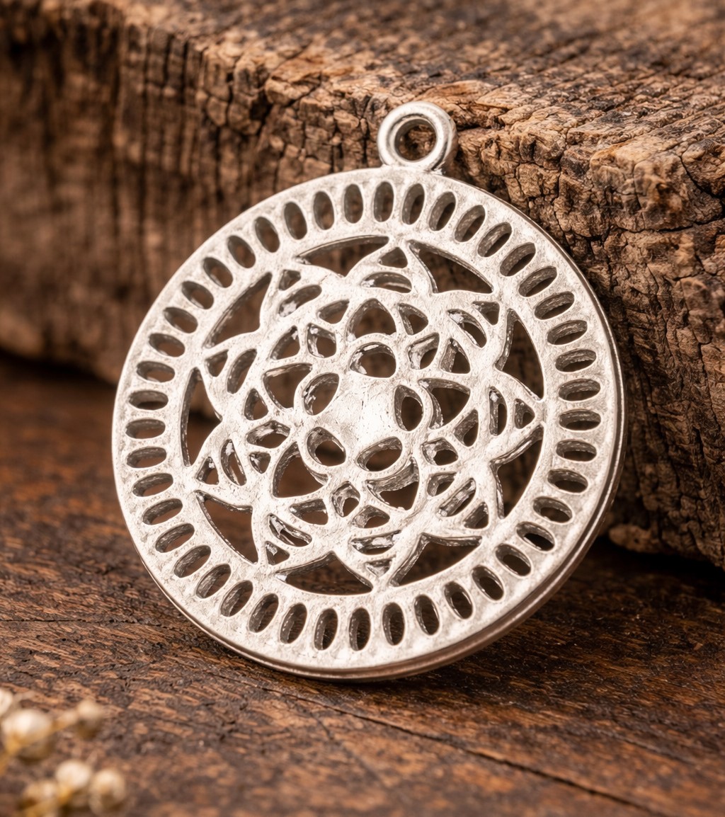 Charm Anhänger Lebensblume rund silberfarben 28 mm x 24 mm