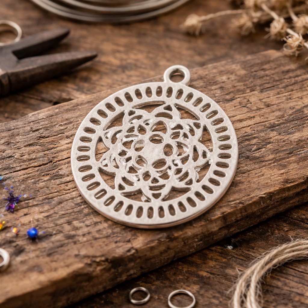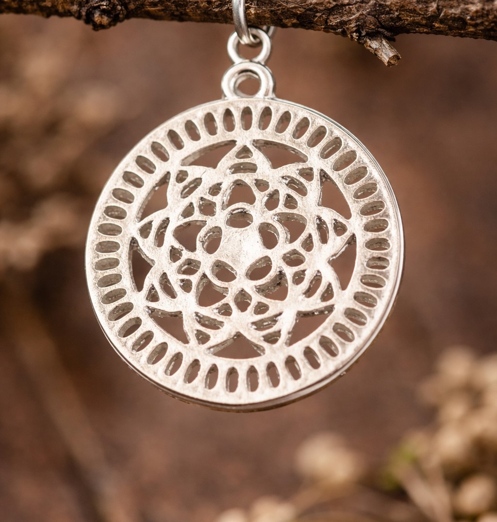 Charm Anhänger Lebensblume rund silberfarben 28 mm x 24 mm - filigraner Schmuckanhänger für Ketten & DIY Schmuck