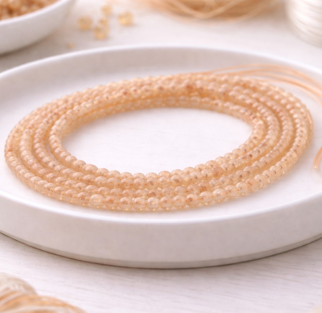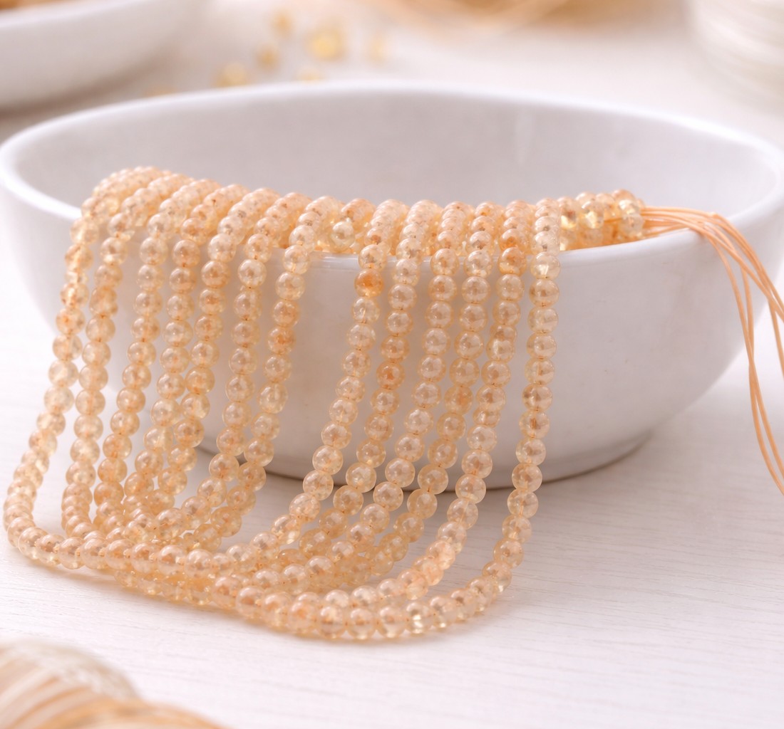Citrin Perlenstrang 3 mm (ca. 38 cm Länge) - Natursteinperlen zur Schmuckherstellung