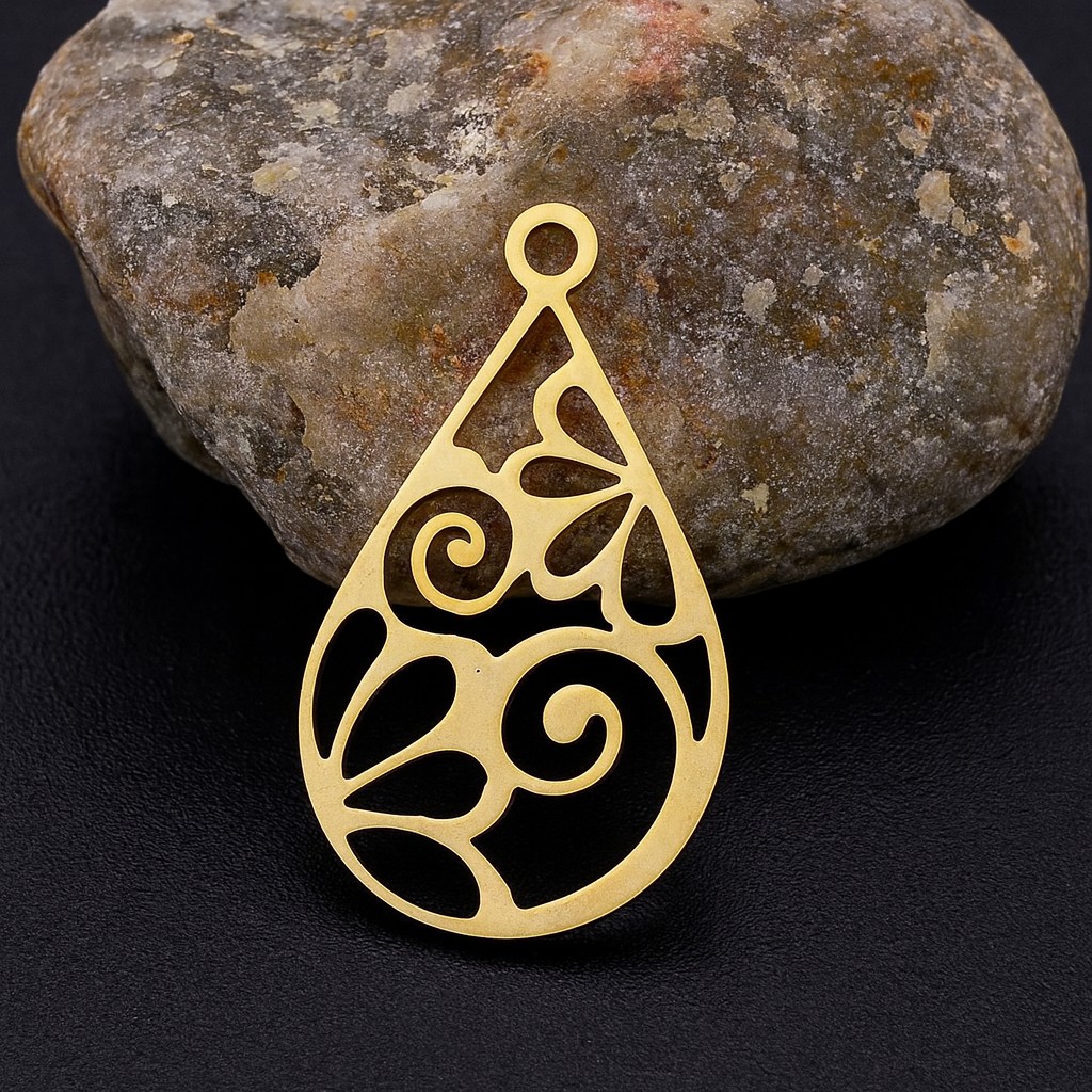 Produktinformationen "Edelstahl Anhänger mit Blumenmuster goldfarben 22 x 13 x 1 mm"