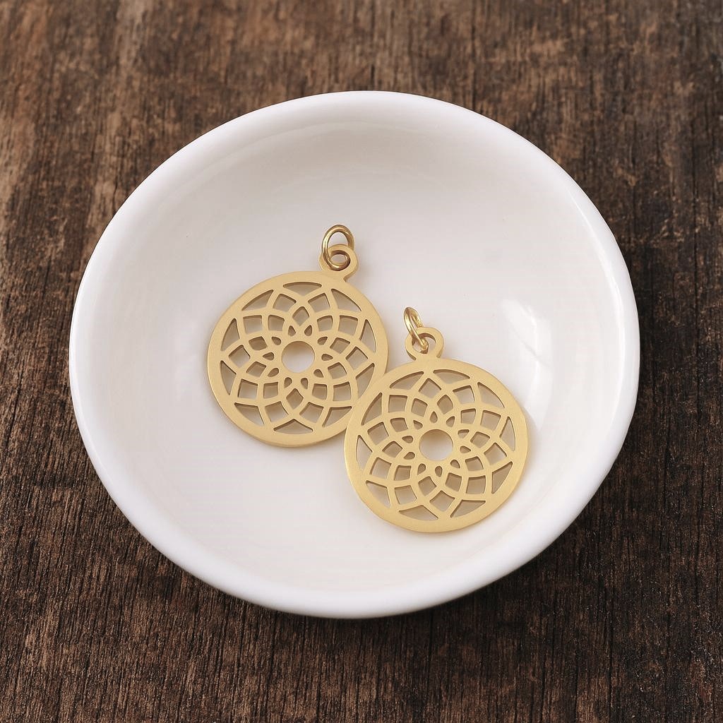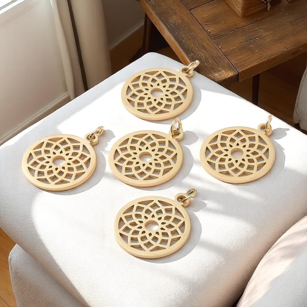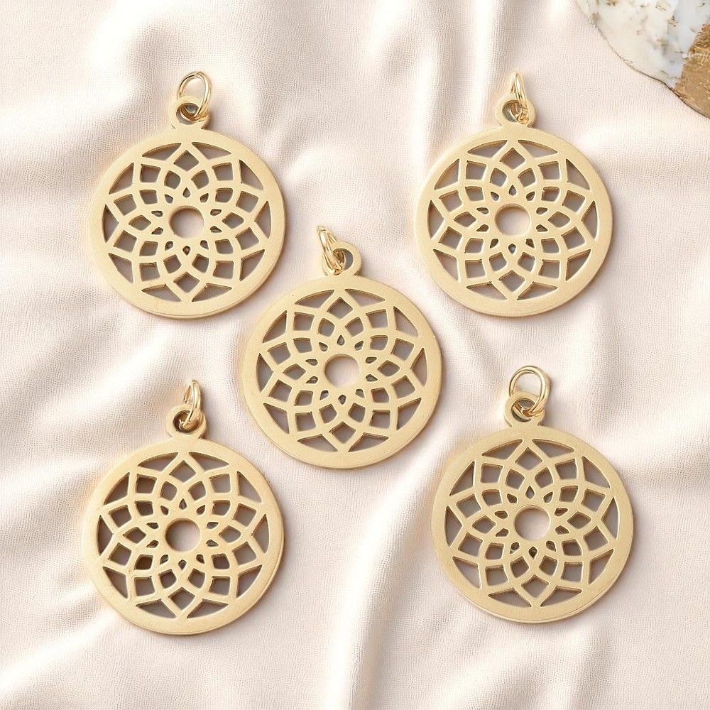 Edelstahl Chakra Anhänger rund goldfarben 22,5 x 19 x 1 mm