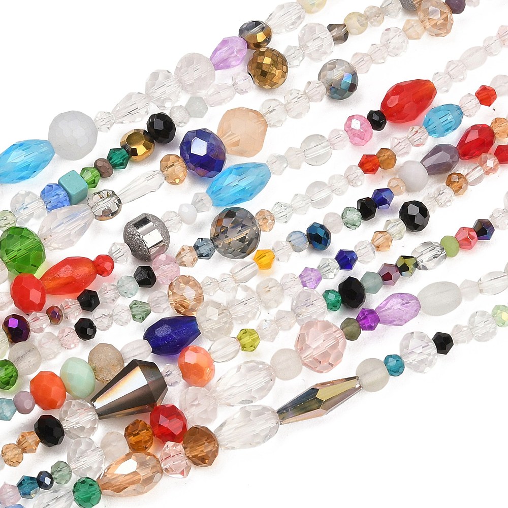 Produktinformationen "Galvanisierte Glasperlenstränge Mischformen und Mischfarbe 2 - 16 x 2 - 16 mm"