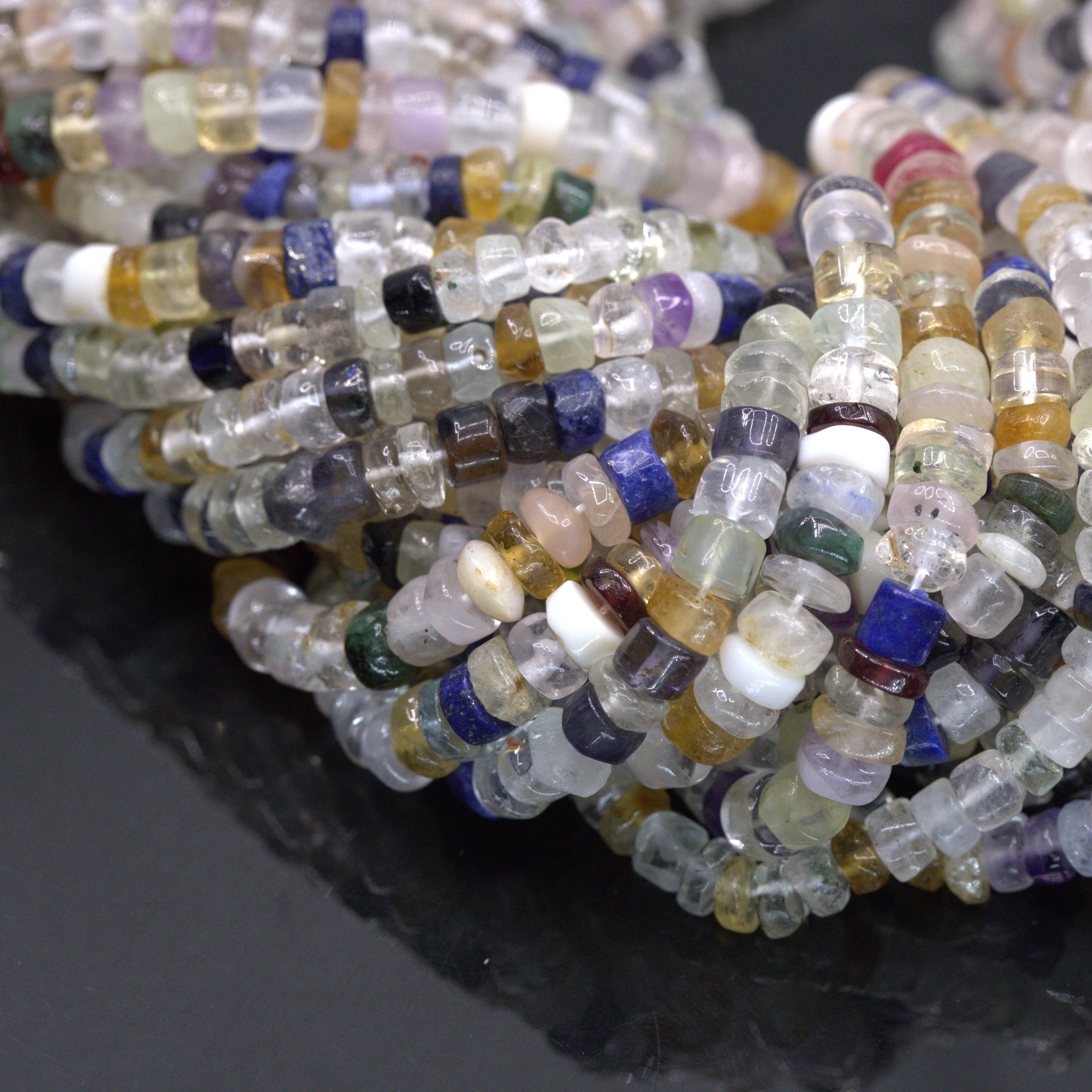 Produktinformationen "Gemischter Edelstein Perlenstrang 4 - 5 x 2 x 4 mm unregelmäßige Rondelle (ca. 32,5 cm Länge)"