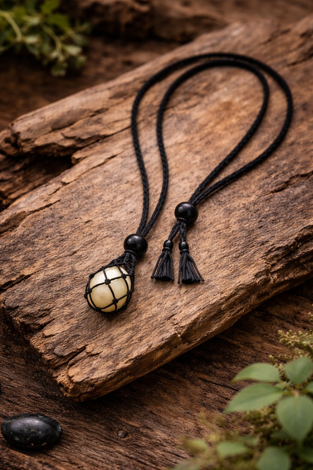Diese handgefertigte Makramee-Kette trägt einen hellen Citrin mit feinen weißen Adern - ein Stein, der für Lebensfreude, Klarheit und neue Energie steht. Im Schwarzen Makramee eingefasst, entfaltet der Citrin seine sanfte, sonnige Ausstrahlung auf besonders natürliche Weise.