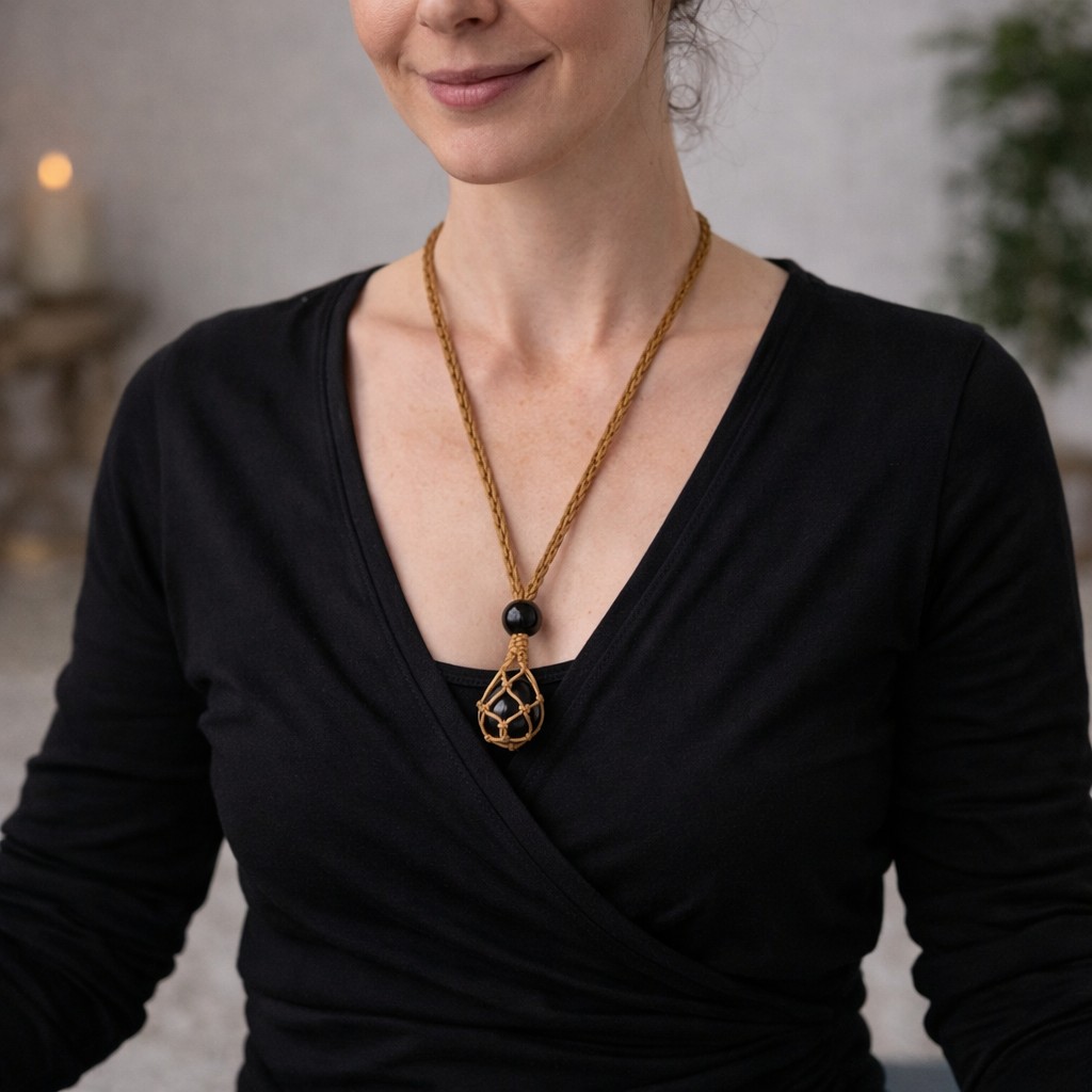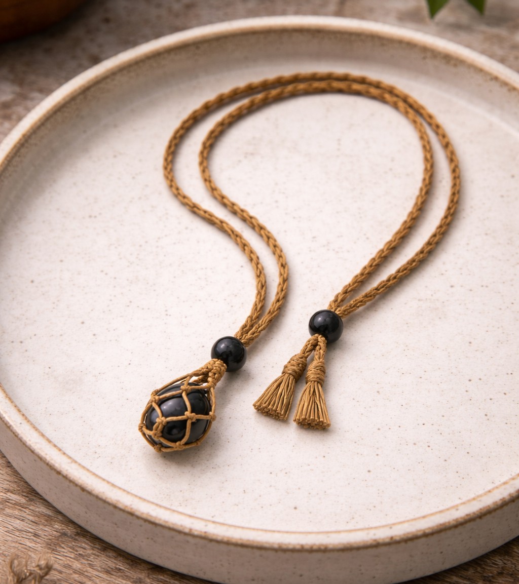 Handgefertigte Obsidian Makramee Kette - dein Stein für Schutz, Klarheit & innere Stärke