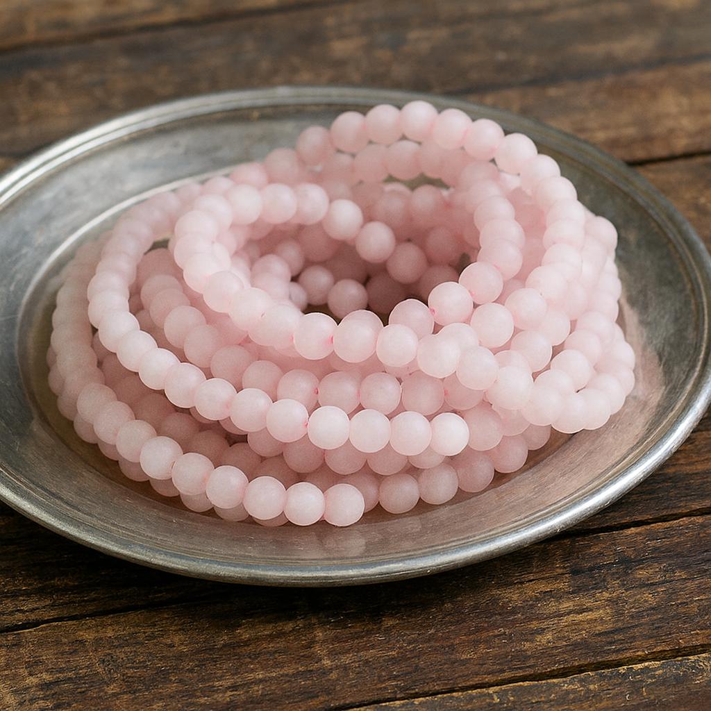 Heller gefrosteter Rosenquarz Perlenstrang rund 4 - 4,3 mm (ca. 100 Perlen / ca. 39 cm Länge)