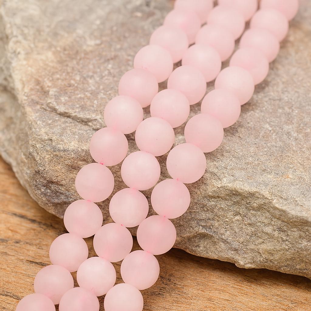 Produktinformationen "Heller gefrosteter Rosenquarz Perlenstrang rund 4 - 4,3 mm (ca. 100 Perlen / ca. 39 cm Länge)"