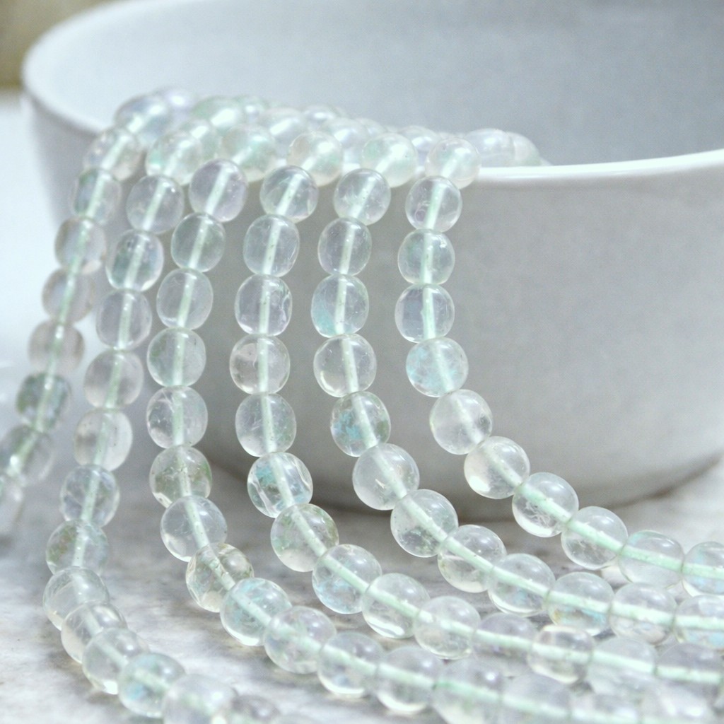 Hellgrüner Fluorit Perlenstrang 6 mm unregelmäßige runde Perlen ( ca. 33 cm Länge)