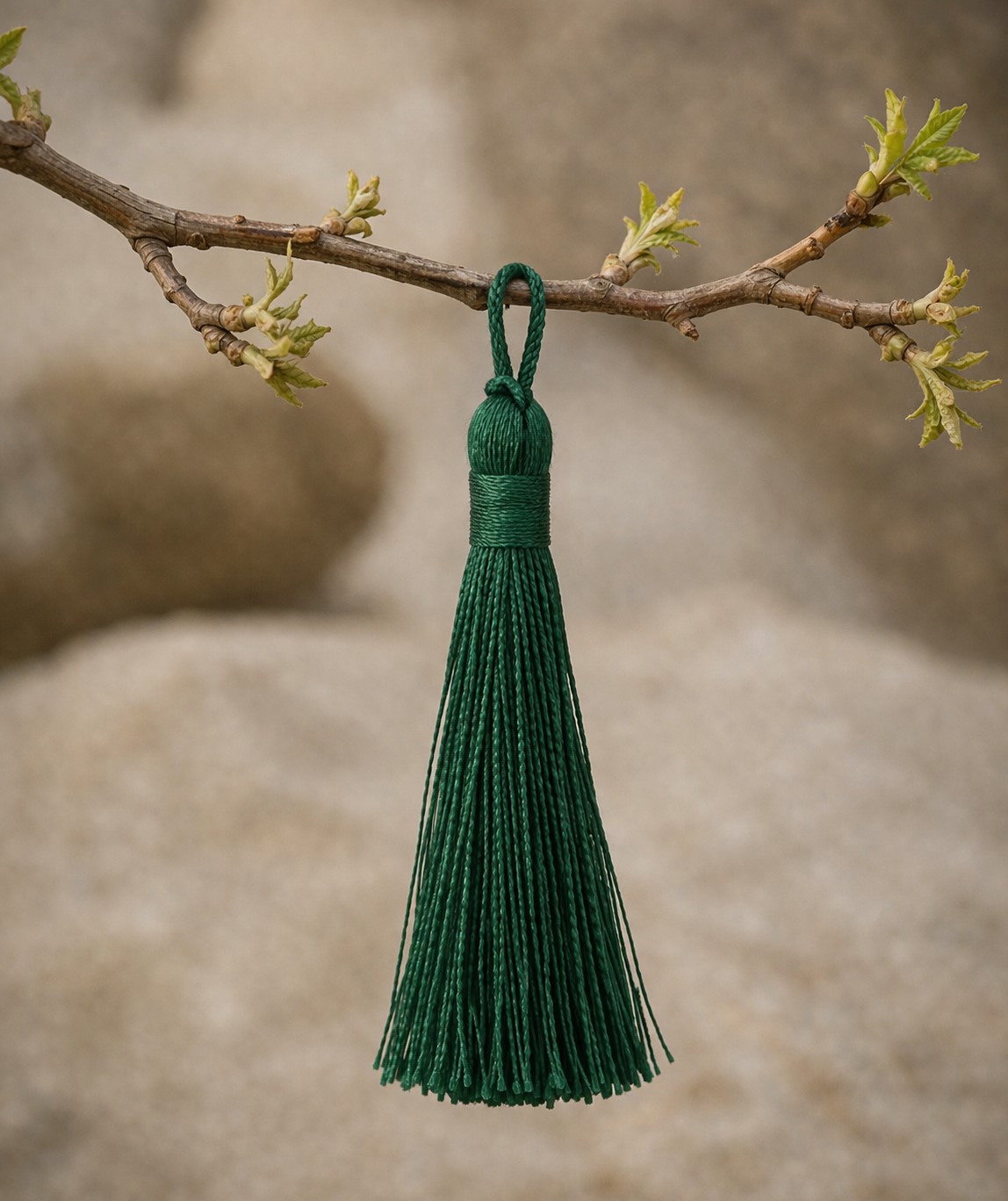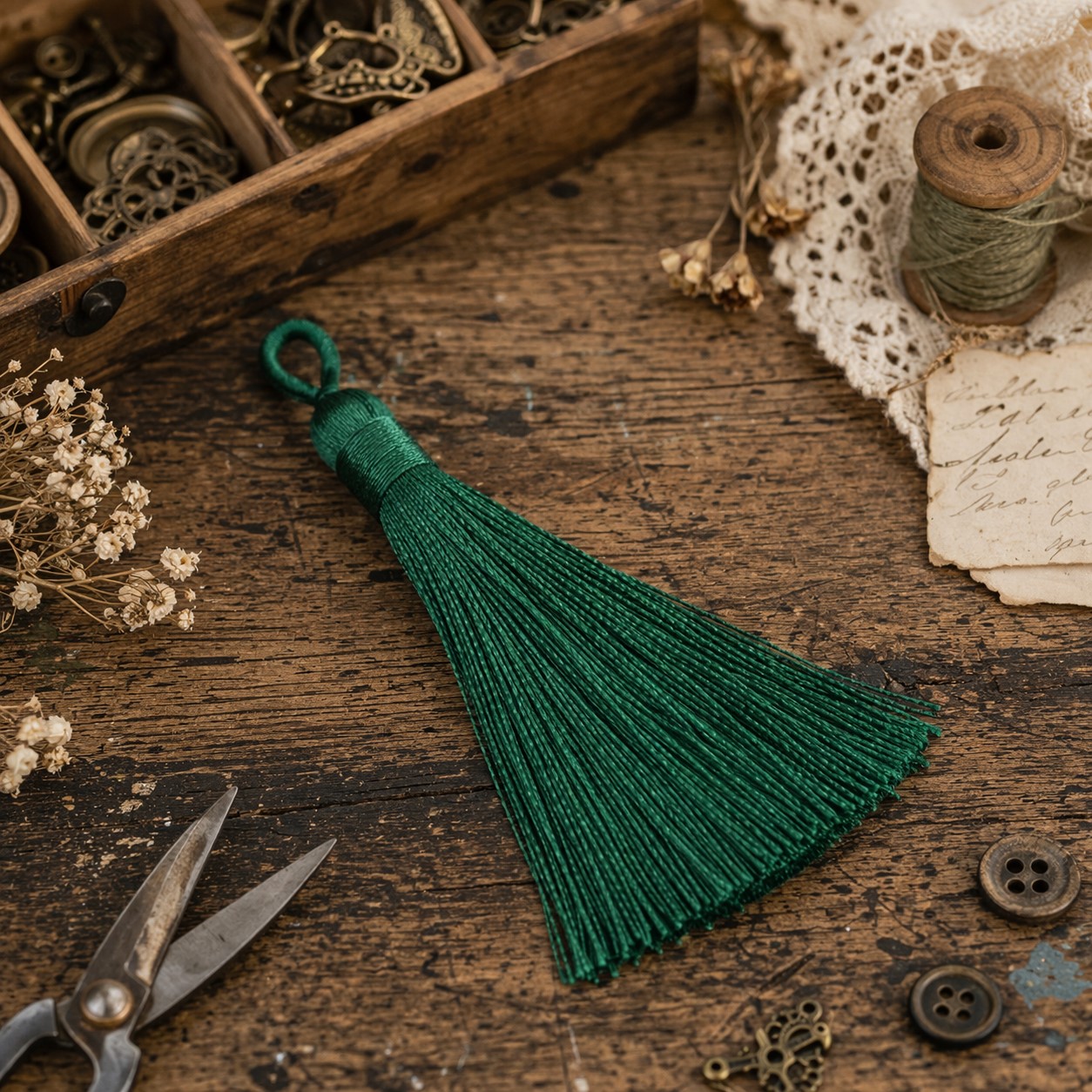 Diese hochwertige Schmuckquaste in Grün ist ein vielseitiger Anhänger für kreative DIY-Schmuckprojekte. Die fein gebundenen, weichen Fäden sorgen für einen eleganten Fall und setzen farbliche Akzente.