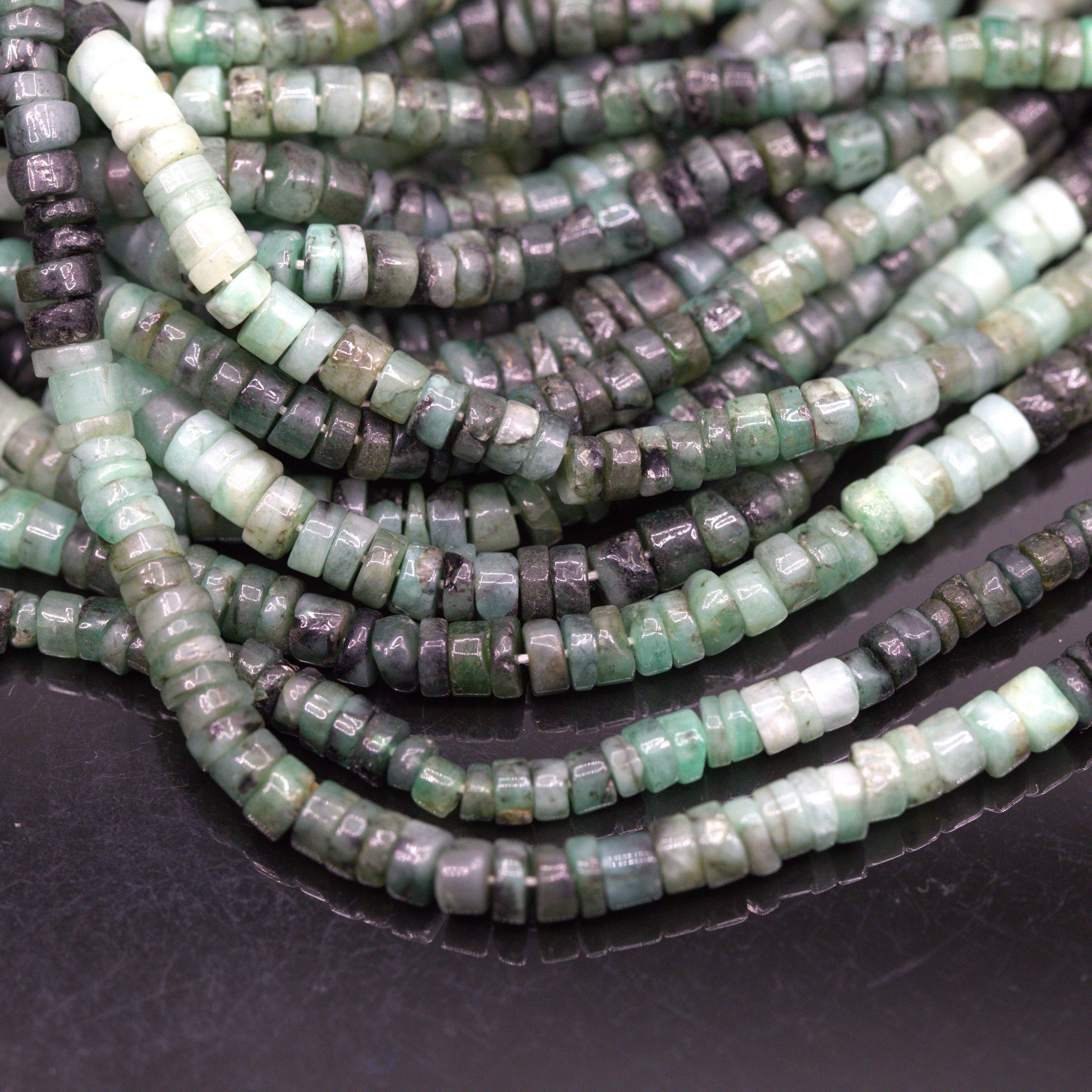 Produktinformationen "Jade Perlenstrang unregelmäßige Rondelle 3 x 2 mm (ca. 34 cm Länge)"