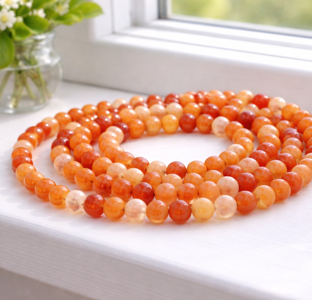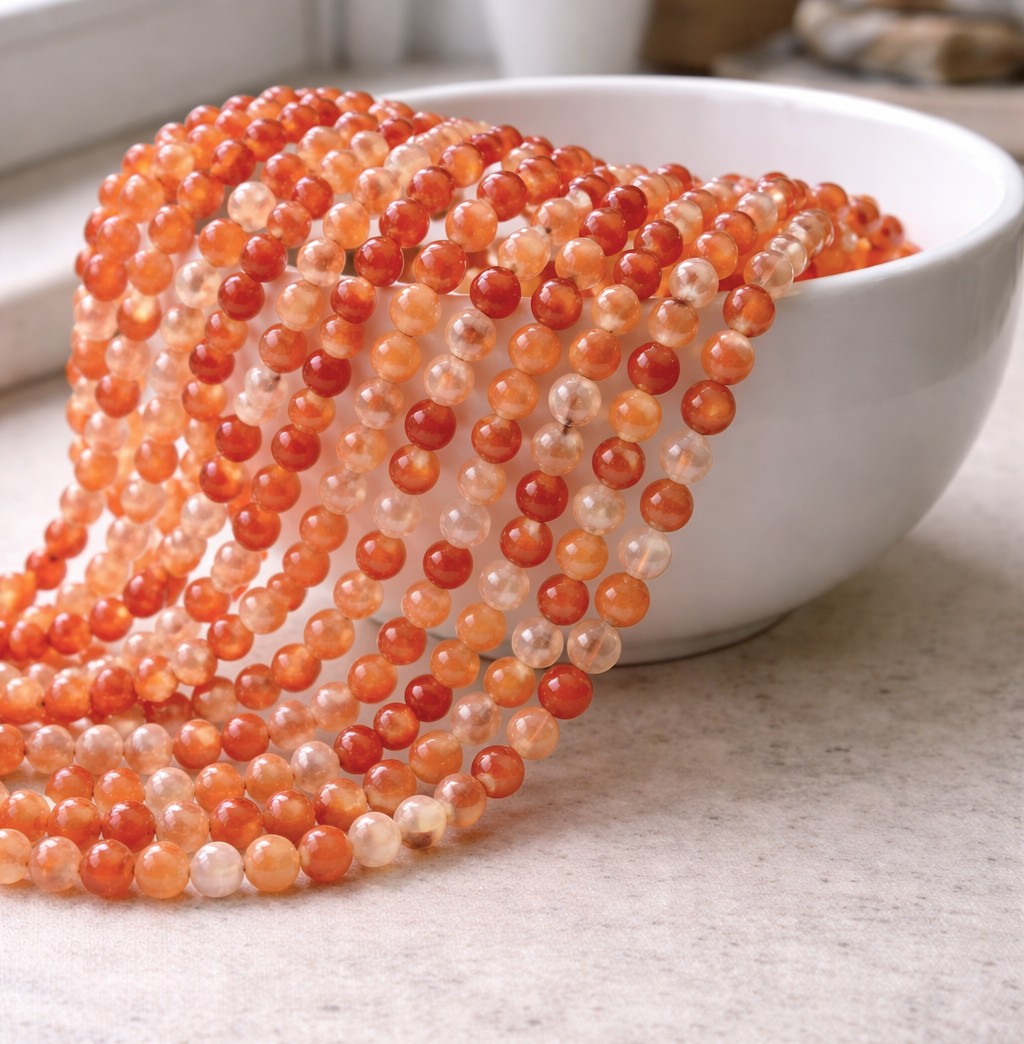 Karneol Perlenstrang 6,2 mm (ca. 62 Perlen / ca. 37 cm Länge)