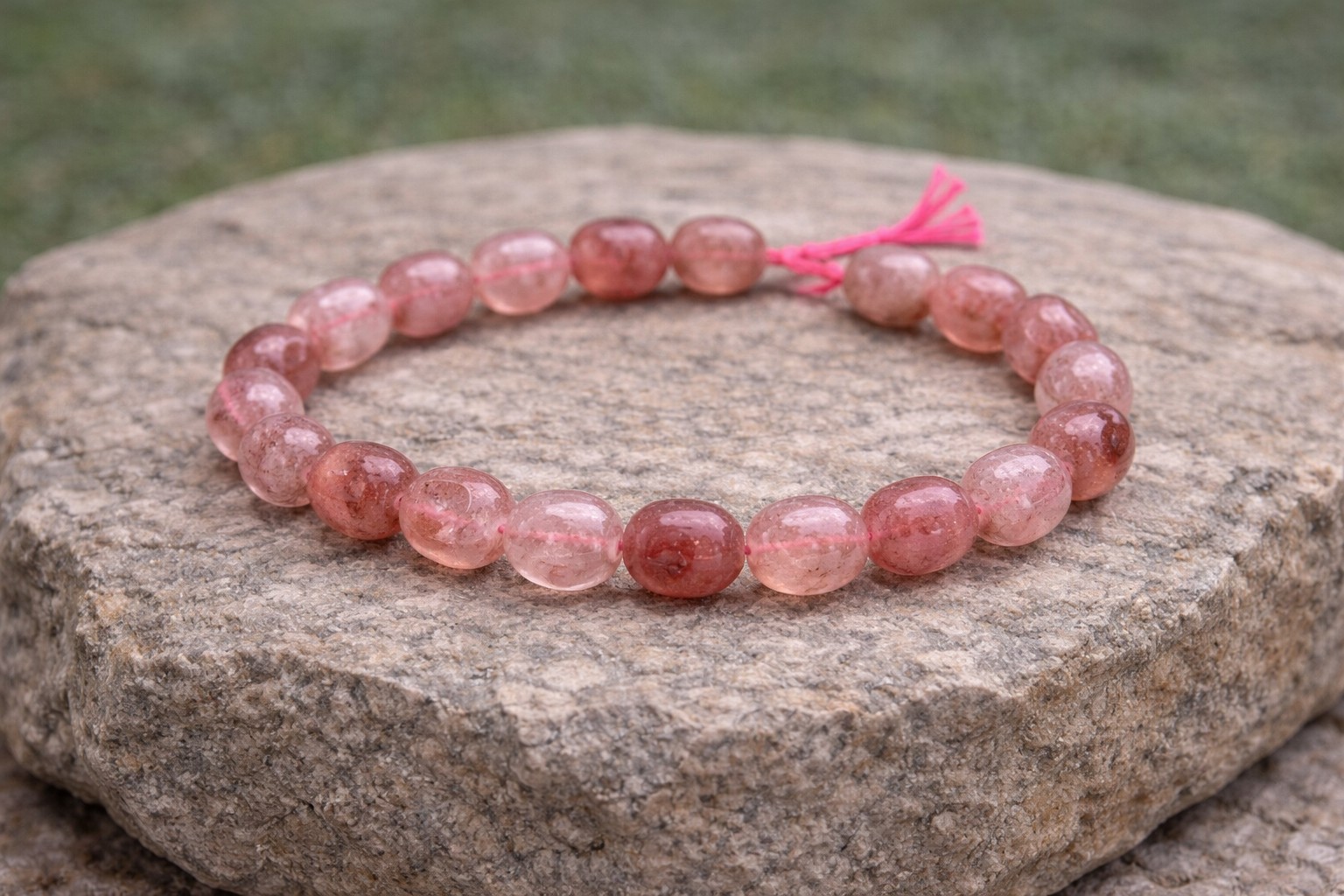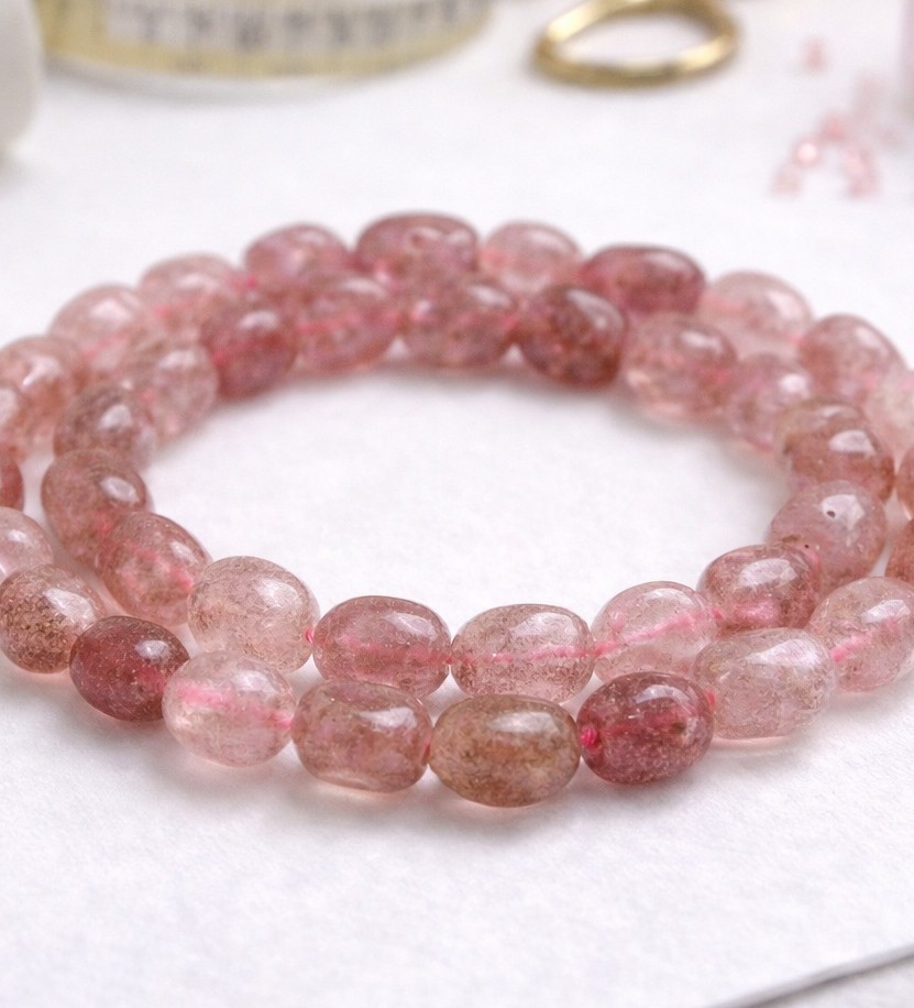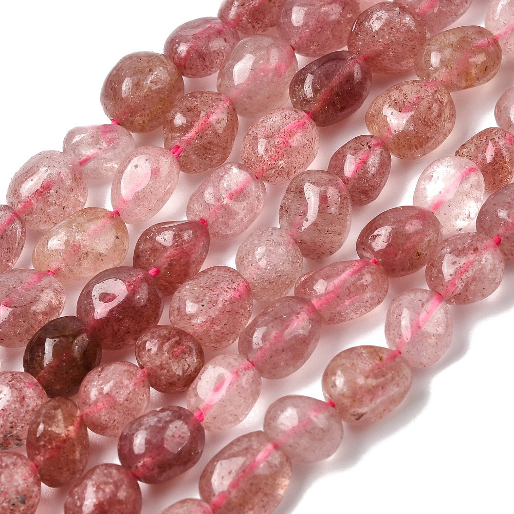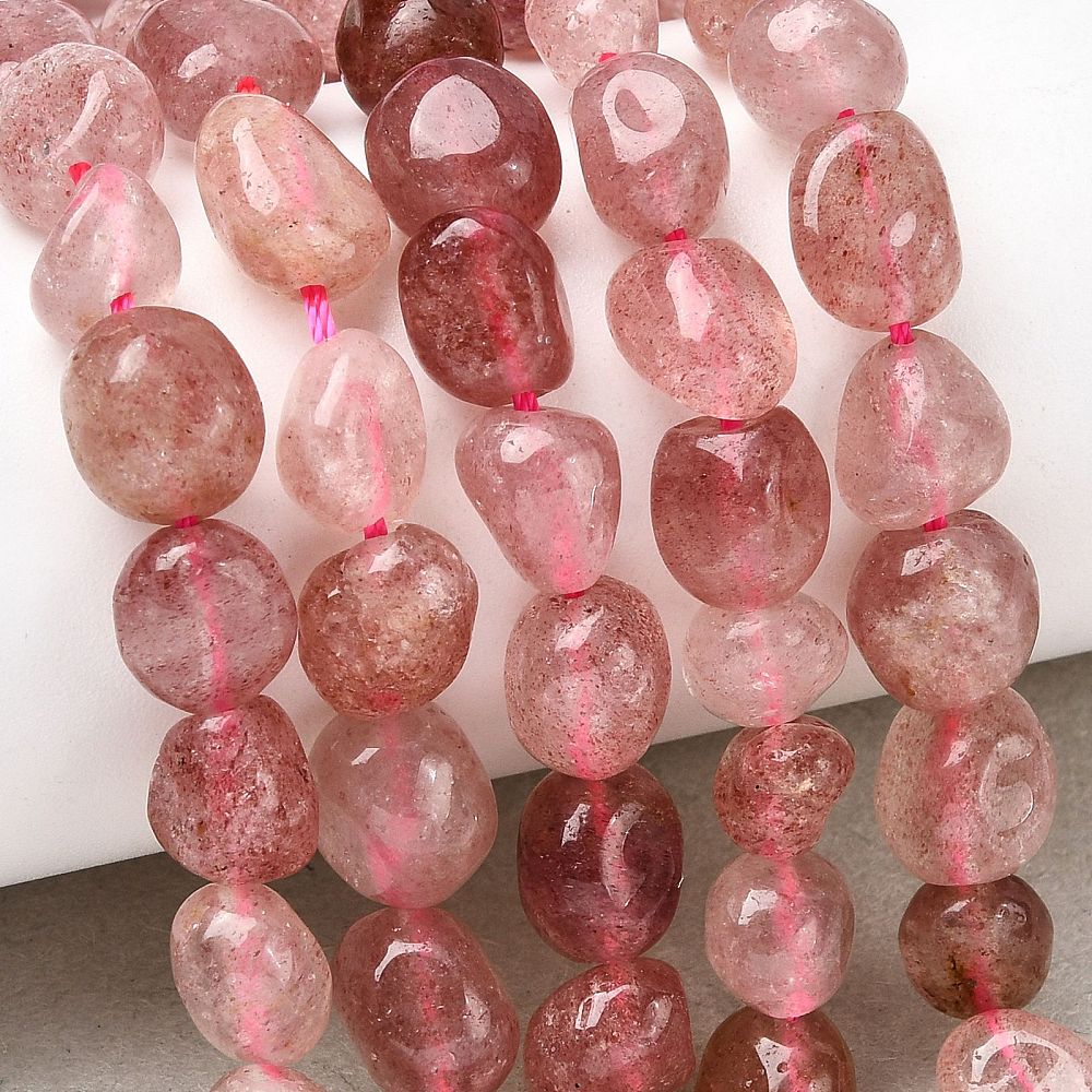 Produktinformationen "Kurzer Erdbeerquarz Perlenstrang Nuggets 5-9 x 5-8,5 x 3-6 mm (ca. 30 Perlen / ca. 20 cm Länge)"