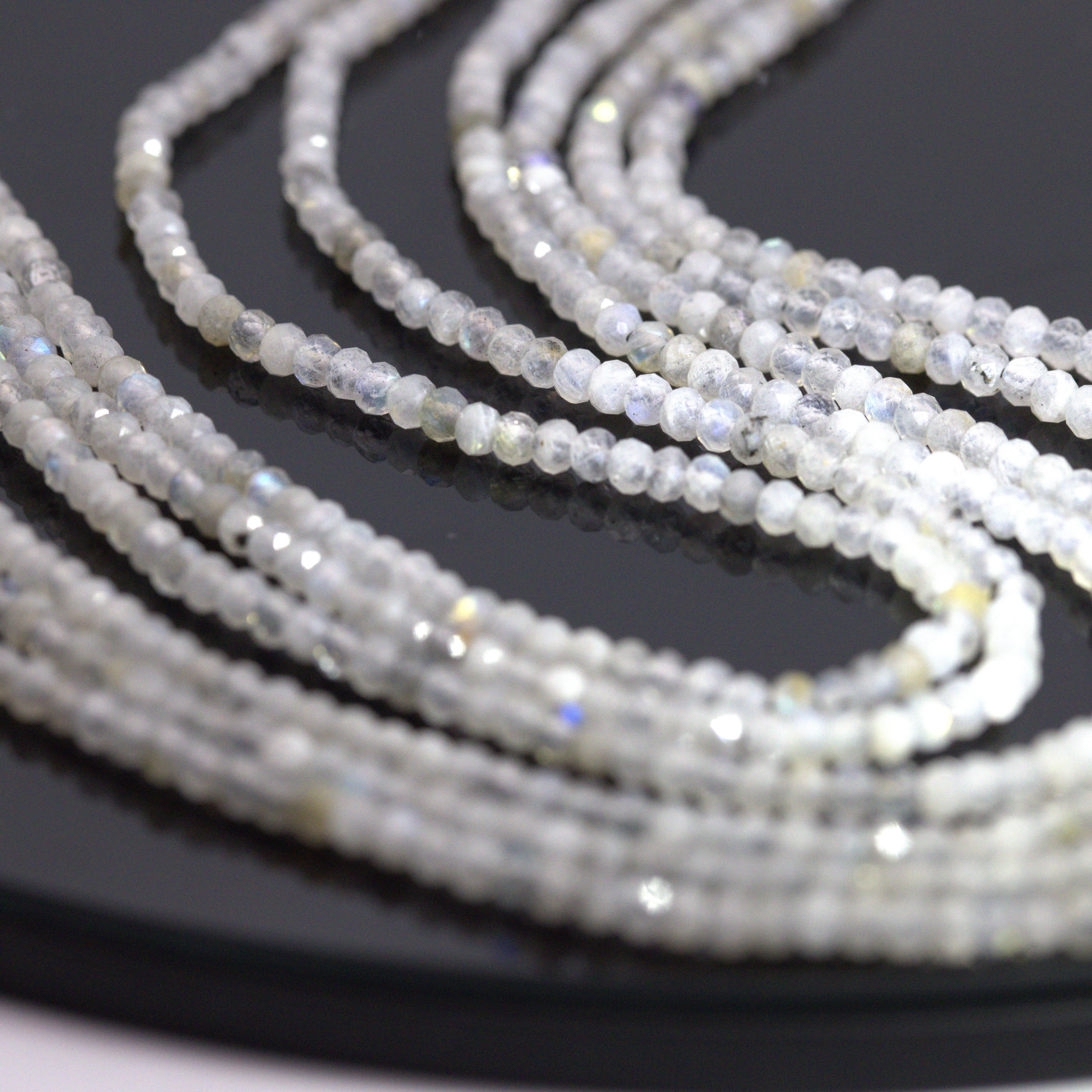 Labradorit Perlenstrang 3 x 2 mm facettierte Perlen (ca. 39 cm Länge)