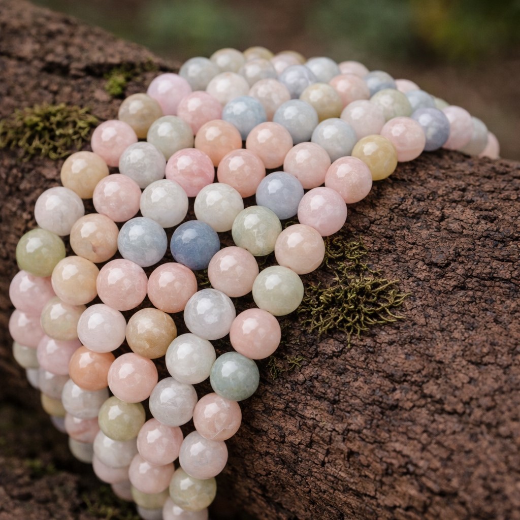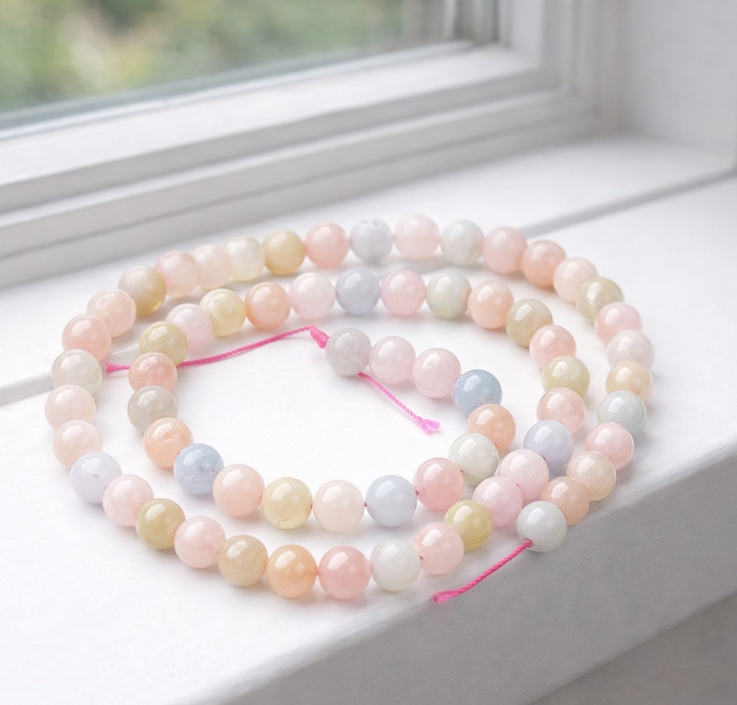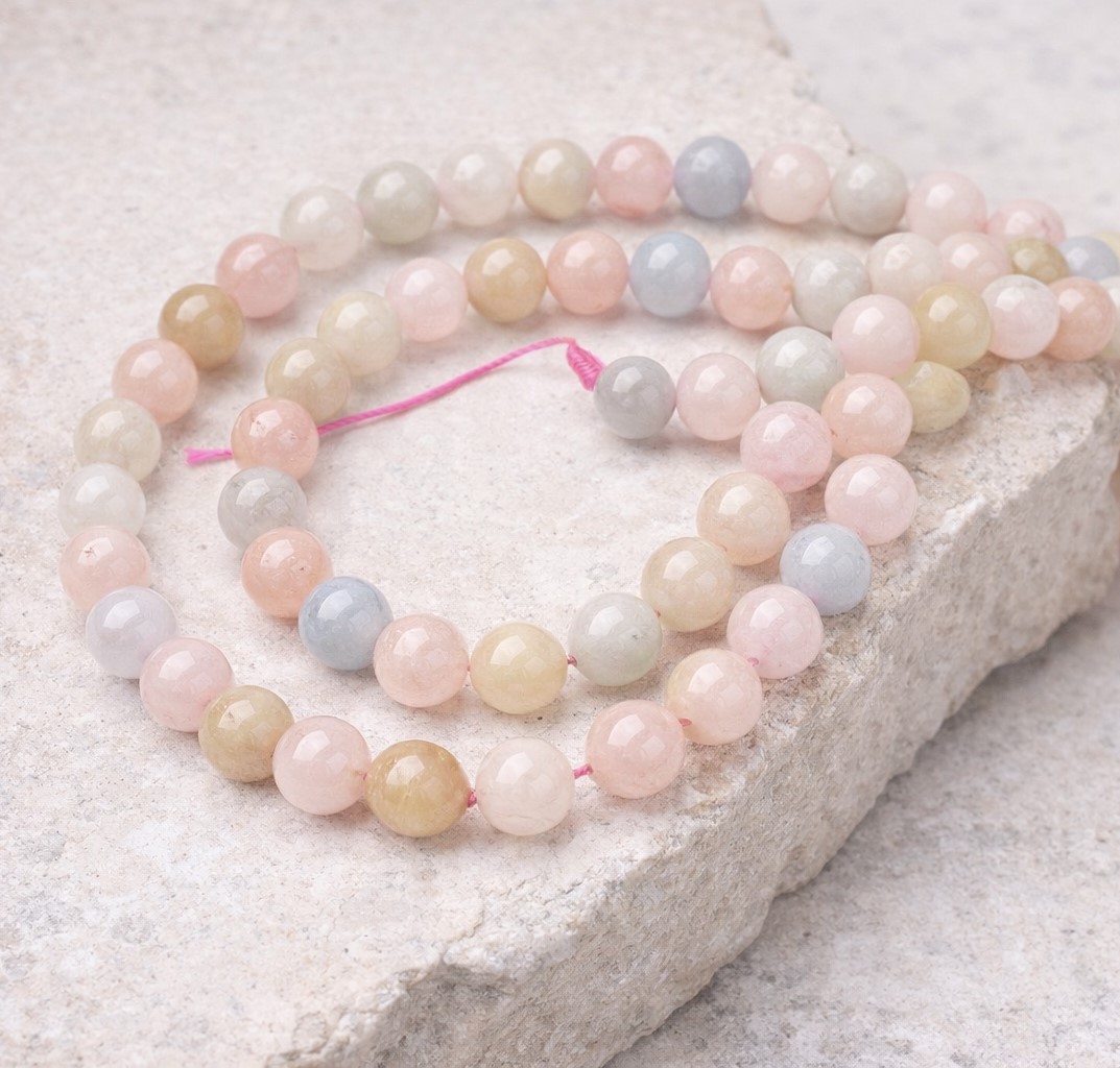 Produktinformationen "Morganit Perlenstrang 6,2 mm (ca. 62 Perlen / ca. 38 cm Länge)"