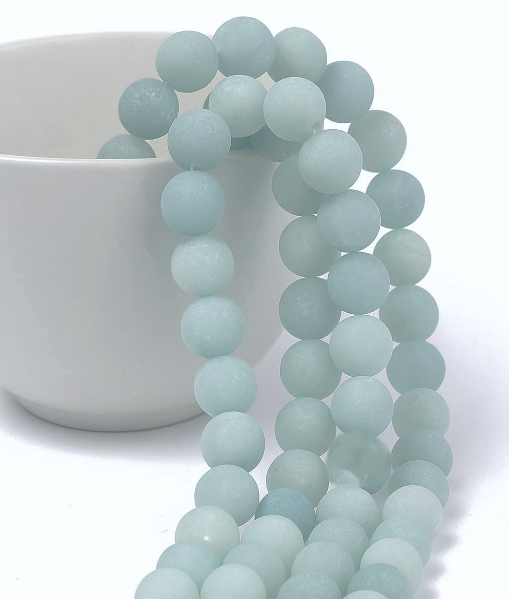 Produktinformationen "Natürlicher Amazonit Perlenstrang matt gefrostet rund 8 mm (ca. 46 Perlen / ca. 40 cm Länge)"