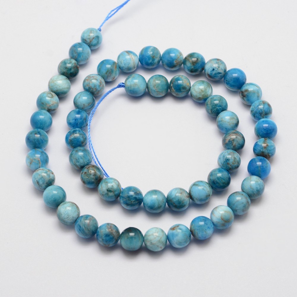Natürlicher Apatit Perlenstrang 8 mm rund glatt glänzend (ca. 50 Perlen / ca. 39 cm Länge)