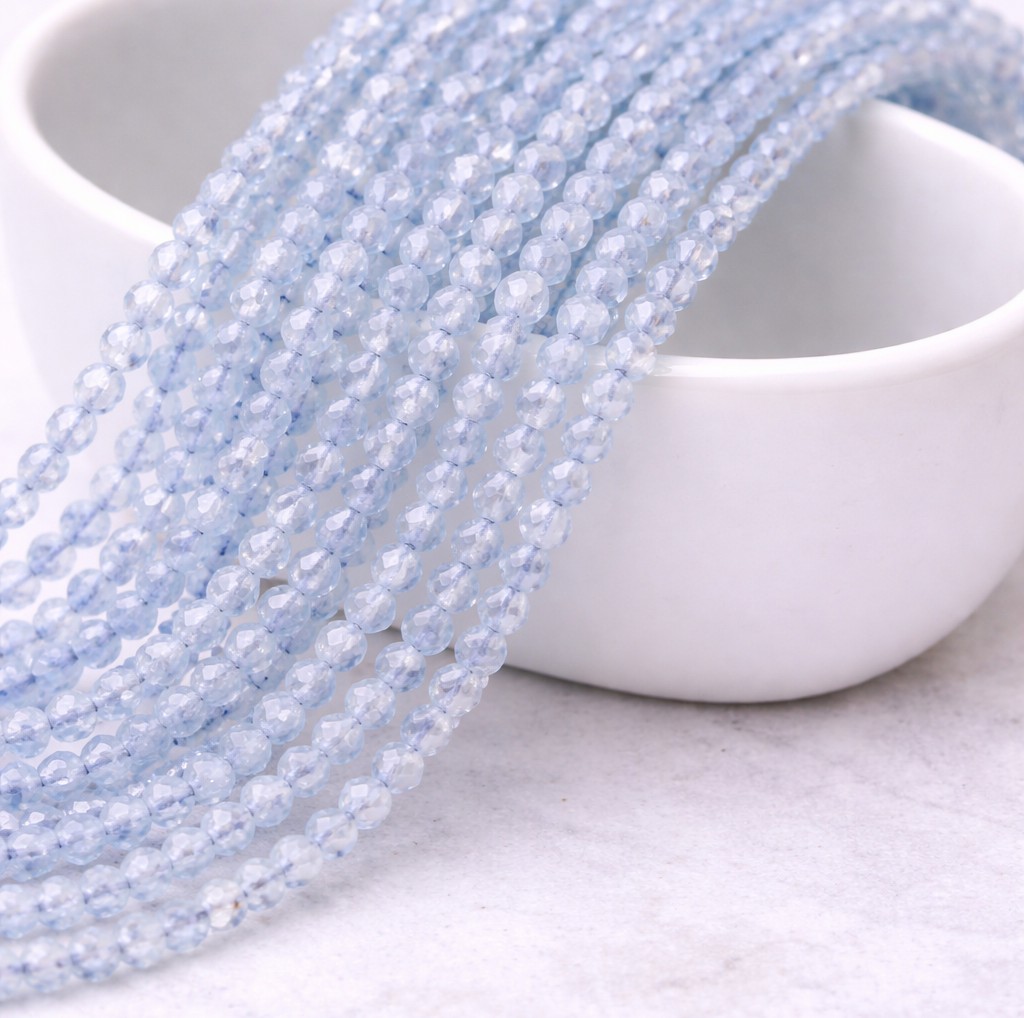 Natürlicher Aquamarin Perlenstrang 2 mm facettiert (ca. 210 Perlen / ca. 39,5 cm Länge)