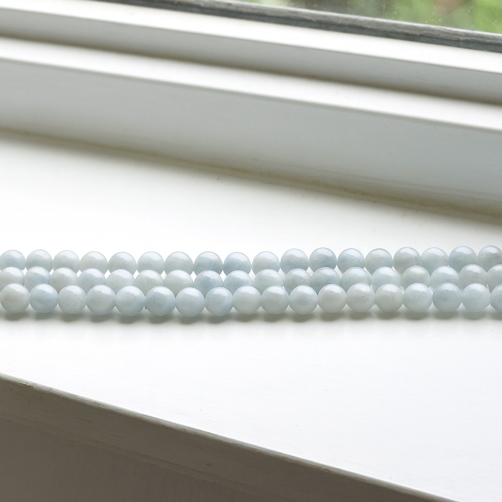 Produktinformationen "Natürlicher Aquamarin Perlenstrang 6,5 - 6,6 mm rund glatt glänzend (ca. 63 Perlen / ca. 40 cm Länge"
