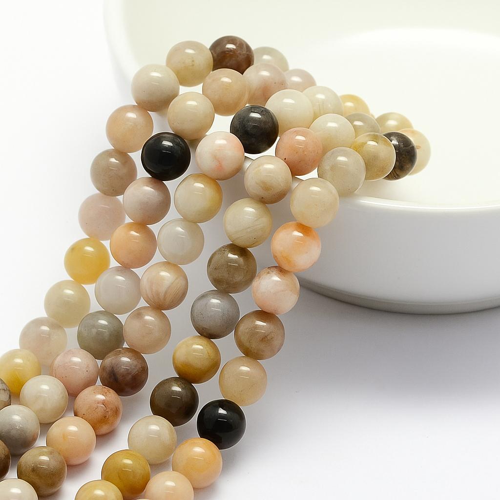 Produktinformationen "Natürlicher Bambusblatt Achat Perlenstrang rund glatt 6,5 - 6,7 mm (ca. 58 Perlen / ca. 38 cm Länge)"
