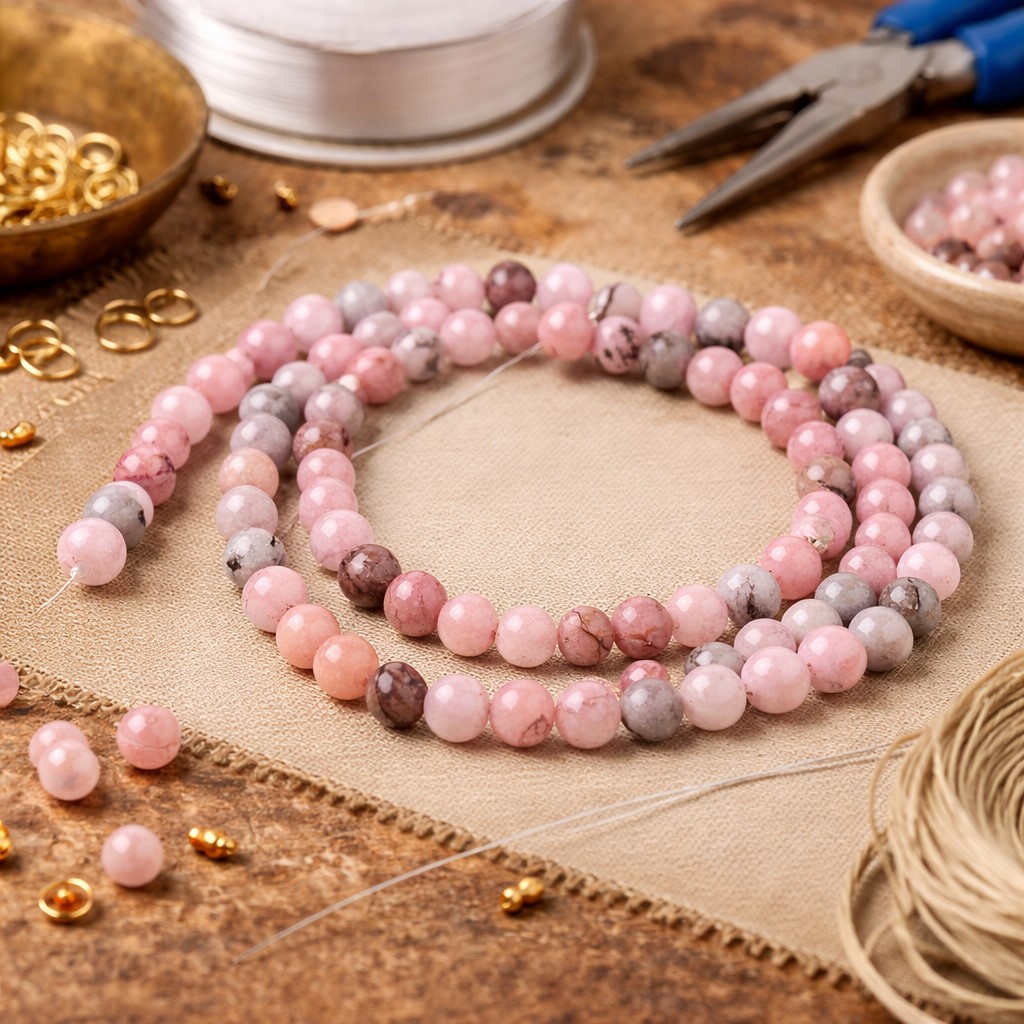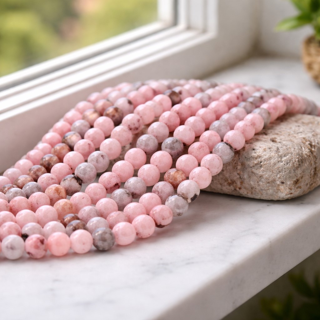 Natürlicher Kirschblüten Jaspis Perlenstrang 6 - 6,5 mm (ca. 63 Perlen / ca. 38 cm Länge)