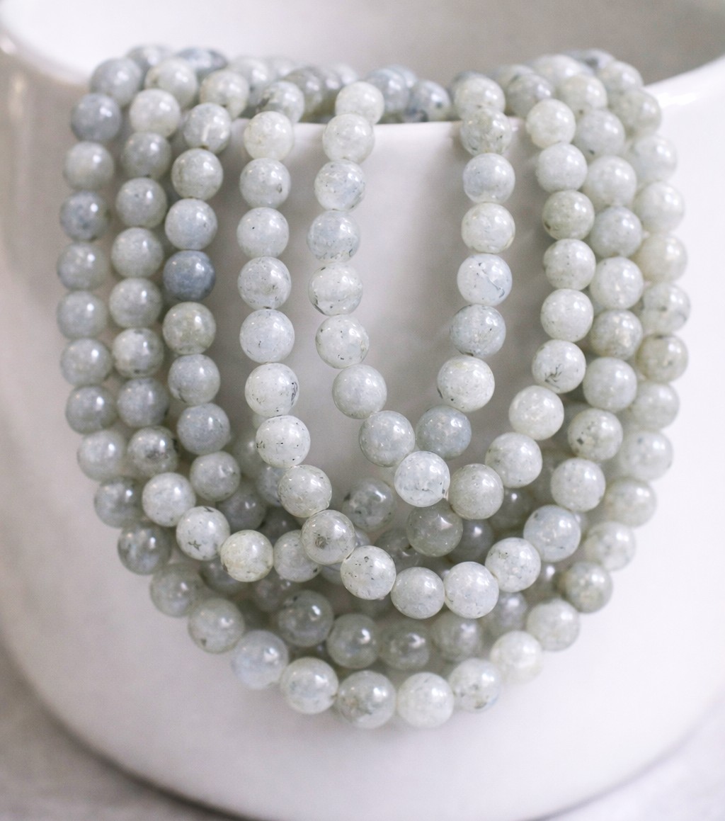 Produktinformationen "Natürlicher Labradorit Perlenstrang rund glatt glänzend 8 mm (ca. 45 Perlen / ca. 38 cm Länge)"