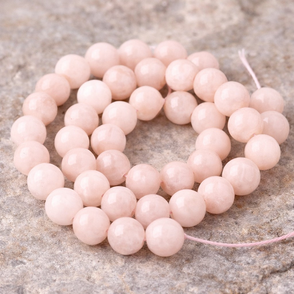 Natürlicher Morganit Perlenstrang rund glatt glänzend 8 mm (ca. 48 Perlen / ca. 38 cm Länge)