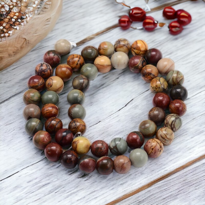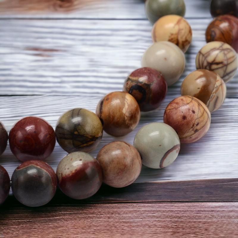 Produktinformationen "Natürlicher Picasso Jaspis Perlenstrang 4,5 - 4,8 mm rund glatt (ca. 83 Perlen / ca. 37 cm Länge)"