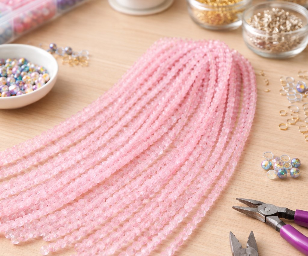 Natürlicher Rosenquarz Perlenstrang facettiert 3,5 - 3,6 mm (ca. 136 Perlen / ca. 38,5 cm Länge)