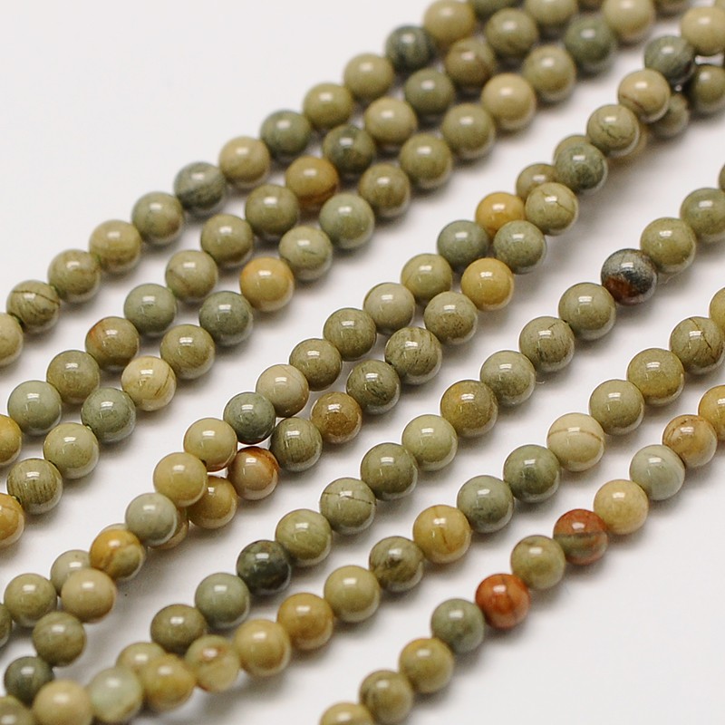 Natürlicher Silberblatt Jaspis Perlenstrang 2 mm rund (ca. 180 Perlen / ca. 40 cm Länge)