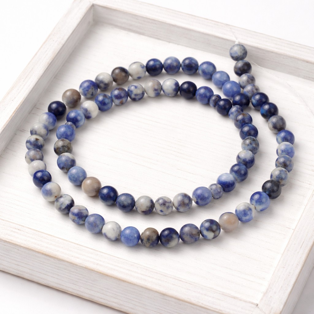 Natürlicher Sodalith Perlenstrang Klasse AB rund glatt 6,3 - 6,4 mm (ca. 60 Perlen / ca. 38 cm Länge)