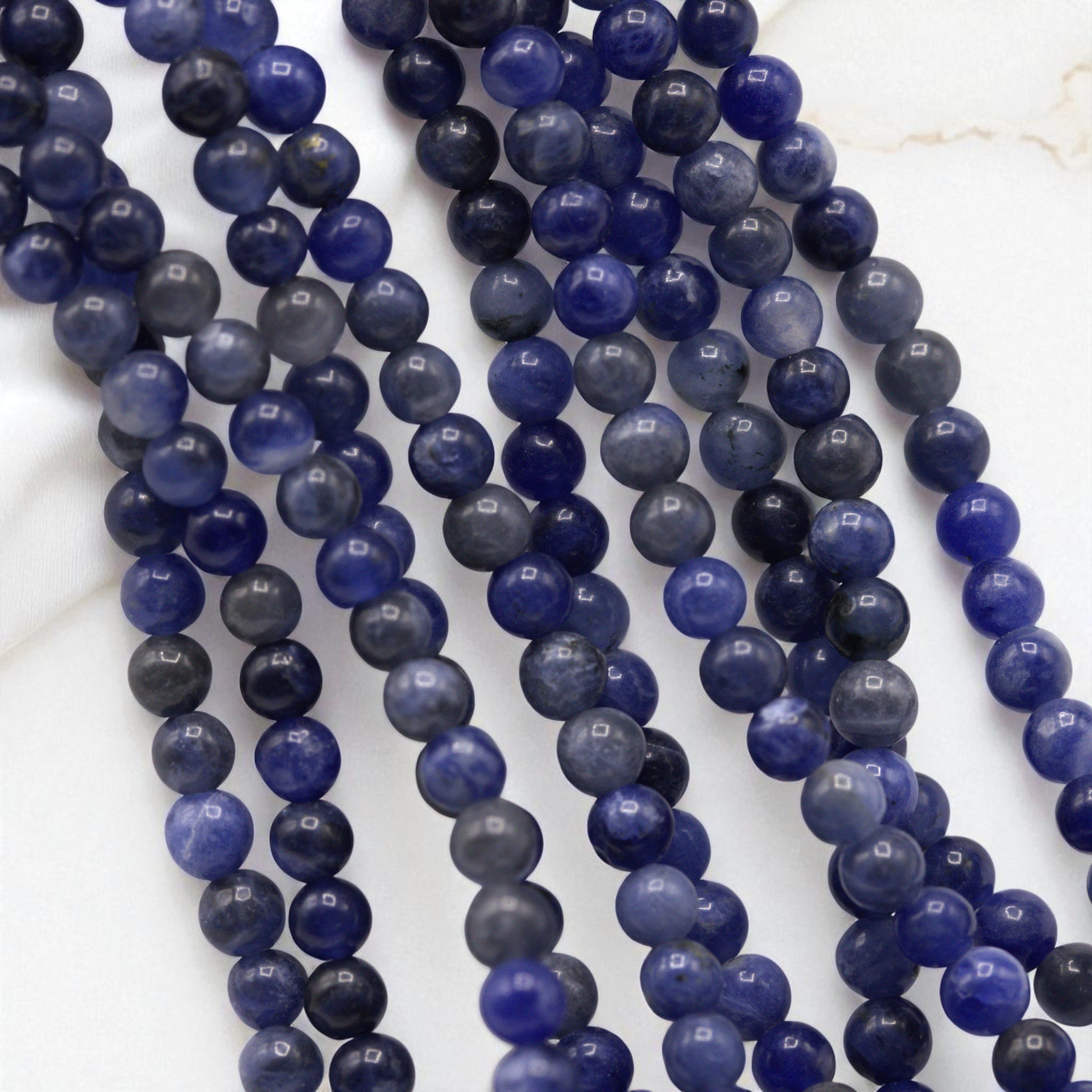 Natürlicher Sodalith Perlenstrang rund glatt 4,3 - 4,5 mm (ca. 83 Perlen / ca. 38 cm Länge)