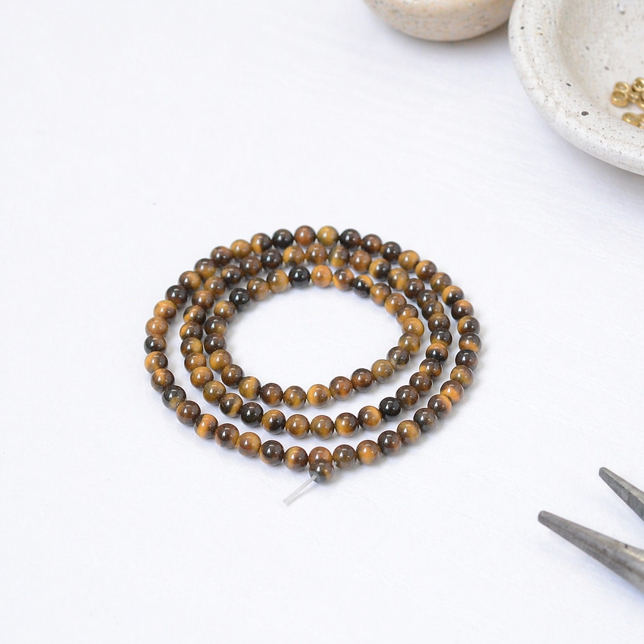 Produktinformationen "Natürlicher Tigeraugen Perlenstrang glatt glänzend 4,5 - 4,6 mm (ca. 86 Perlen / ca. 37 cm)"