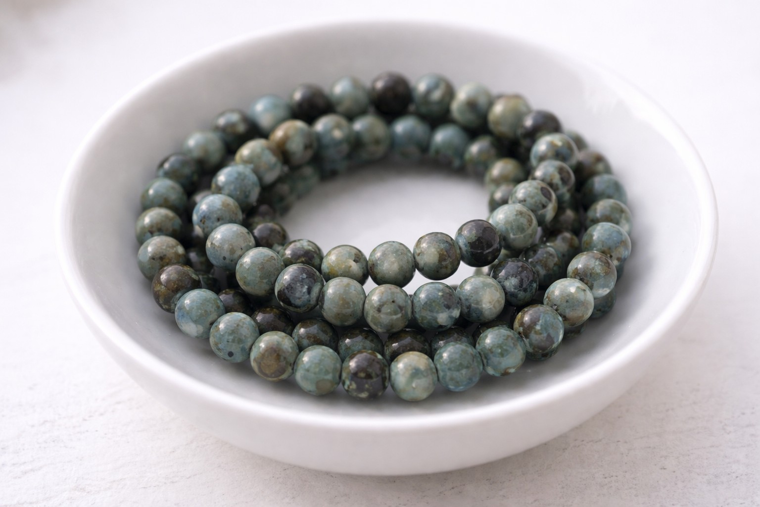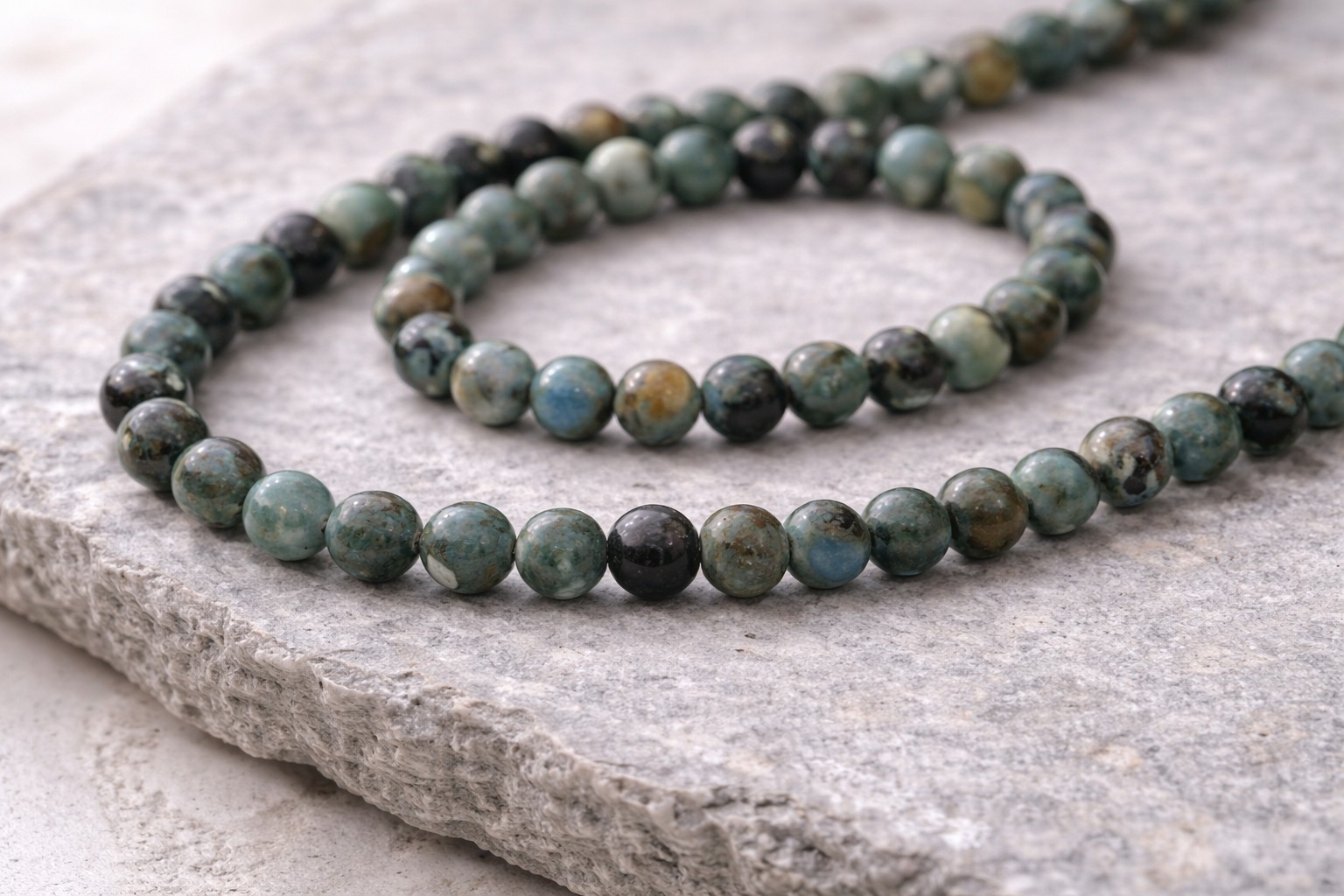 Natürlicher Variscit Perlenstrang 6 - 6,4 mm rund glatt (ca. 64 Perlen / ca. 40 cm Länge)