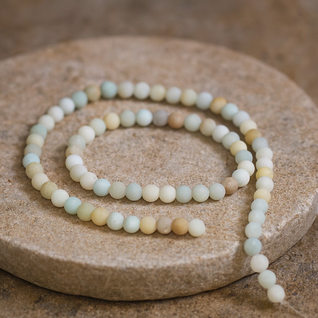 Produktinformationen "Natürlicher gefrosteter matter Amazonit Perlenstrang 4 mm rund (ca. 86 Perlen / ca. 38 cm Länge)"
