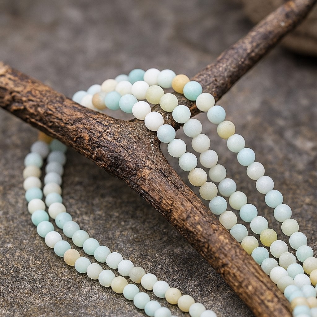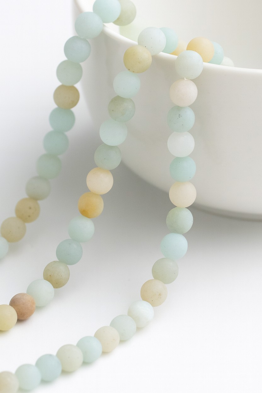 Natürlicher gefrosteter matter Amazonit Perlenstrang 4 mm rund (ca. 86 Perlen / ca. 38 cm Länge)