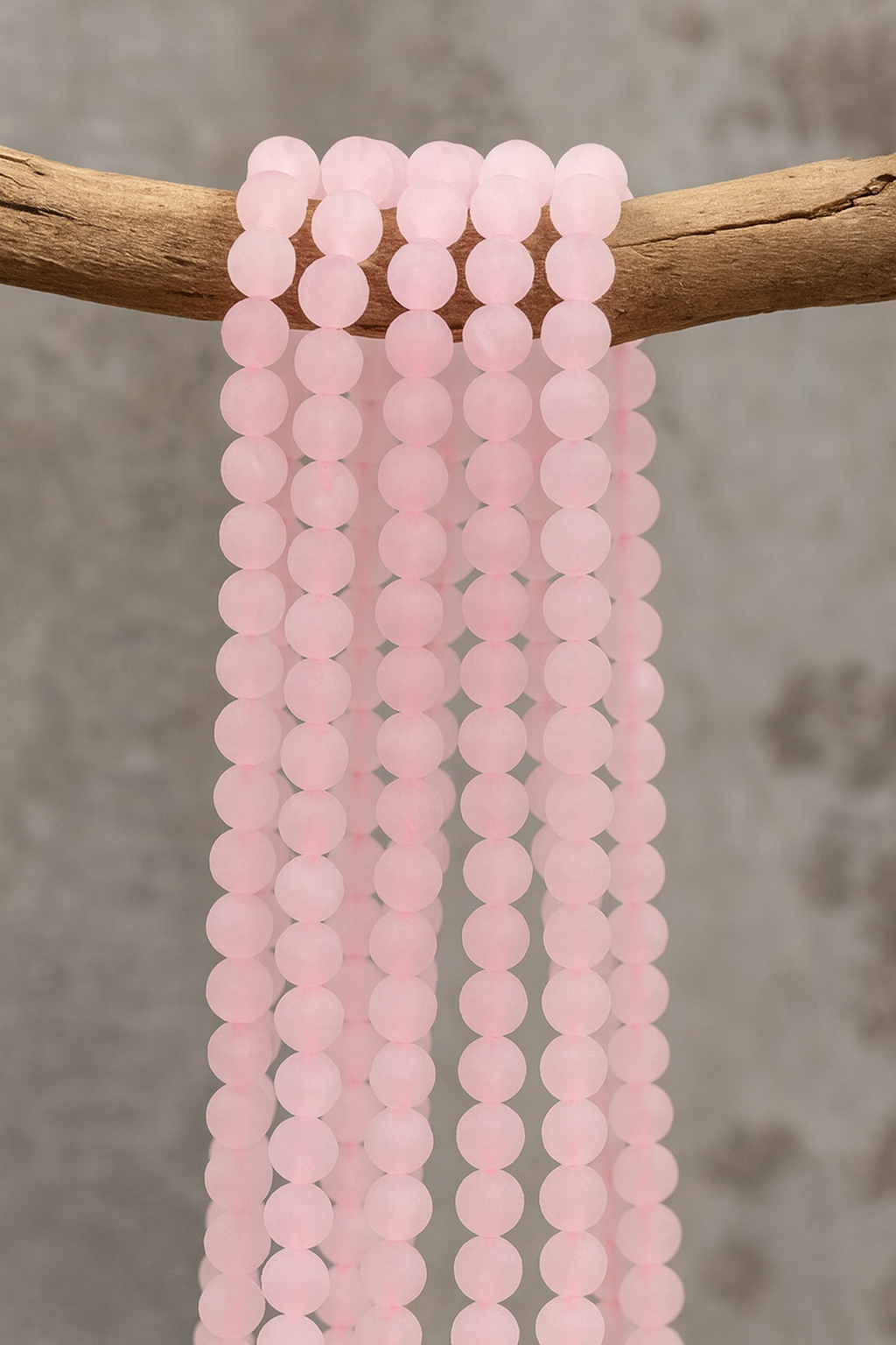 Produktinformationen "Natürlicher gefrosteter matter Rosenquarz Perlenstrang rund 4,5 - 4,6 mm (ca. 91 Perlen / ca. 40 cm Länge)"