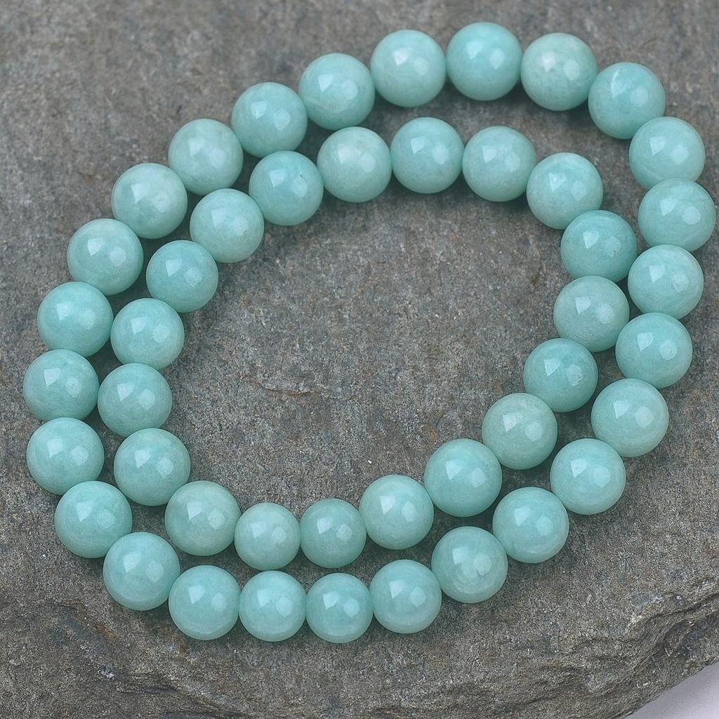 Natürlicher kurzer Amazonit Perlenstrang 8 - 8,2 mm rund glatt glänzend (ca. 24 Perlen / ca. 18,5 cm Länge)