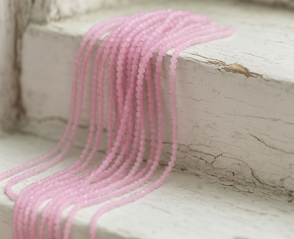 Natürlicher zierlicher Rosenquarz Perlenstrang facettiert 2,4 mm (ca. 182 Perlen / ca. 38,5 cm Länge)