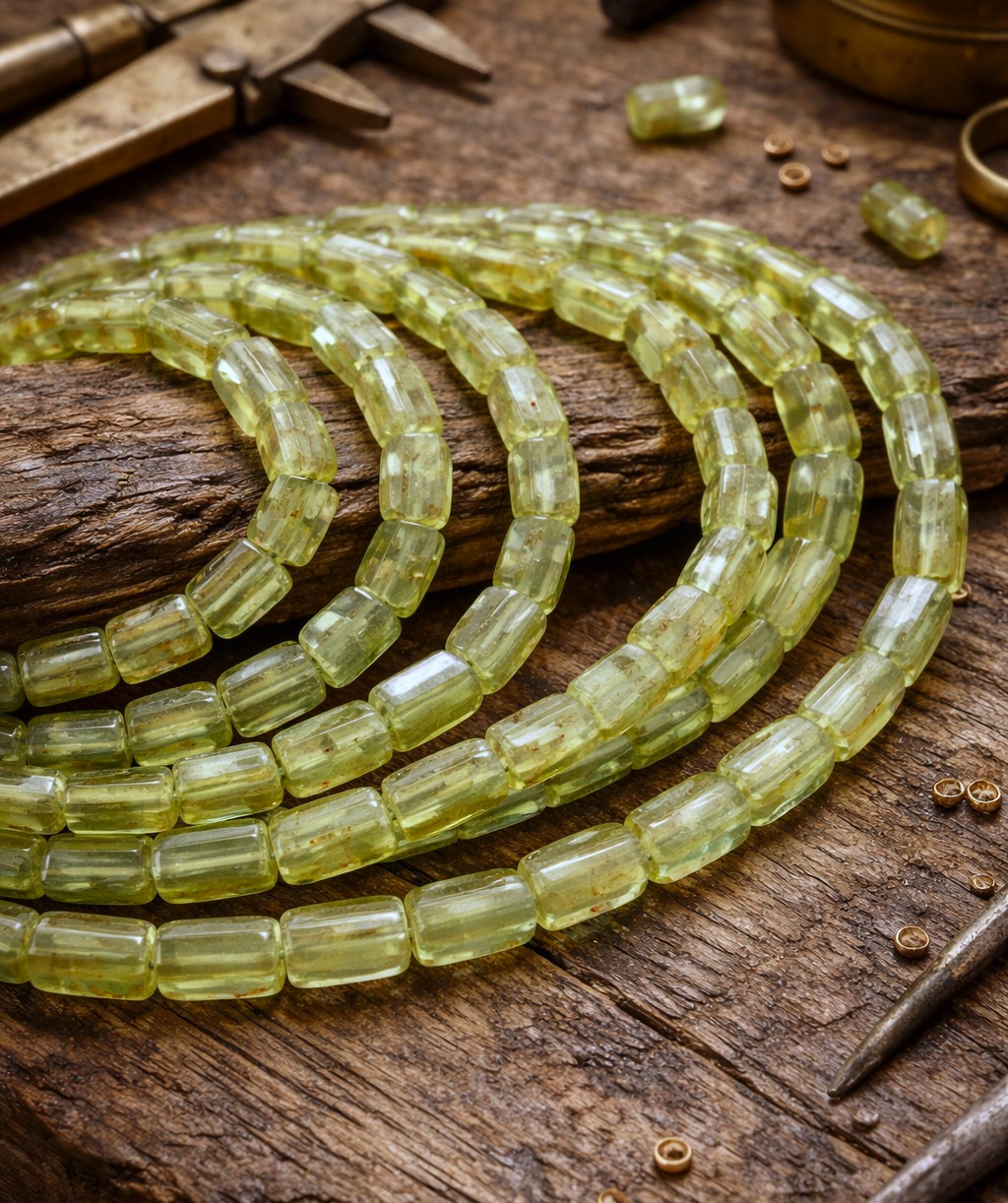 Peridot Perlenstrang 6-9 x 3-5 mm unregelmäßige Rechtecke (ca. 35 cm Länge)
