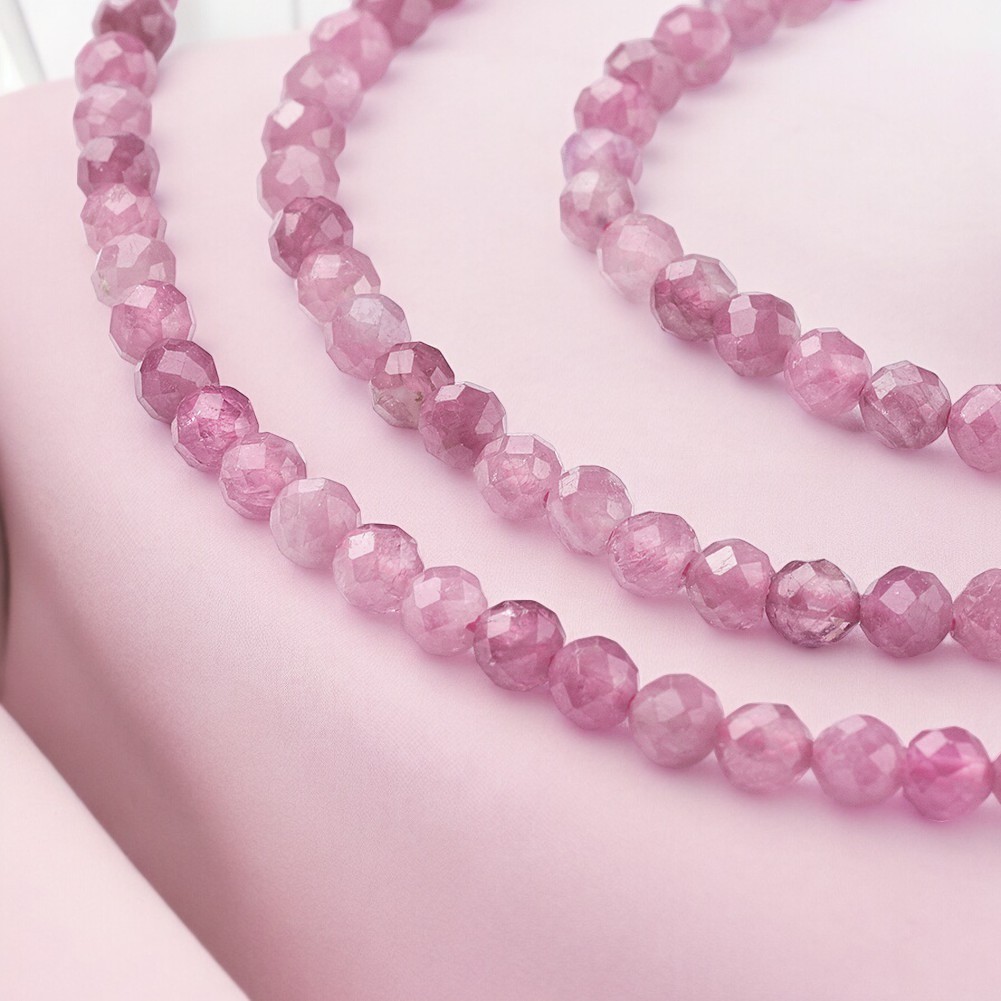Produktinformationen "Pink Turmalin Perlenstrang 3 - 3,5 mm facettiert (ca. 115 Perlen / ca. 39 cm Länge)"