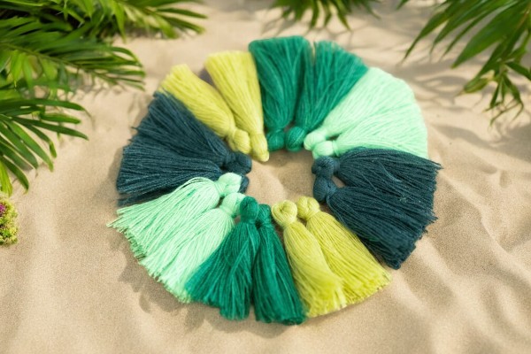 Polyester Baumwoll Quasten Set mit 40 Quasten 28 - 34 x 5 mm verschiedene Grüntöne