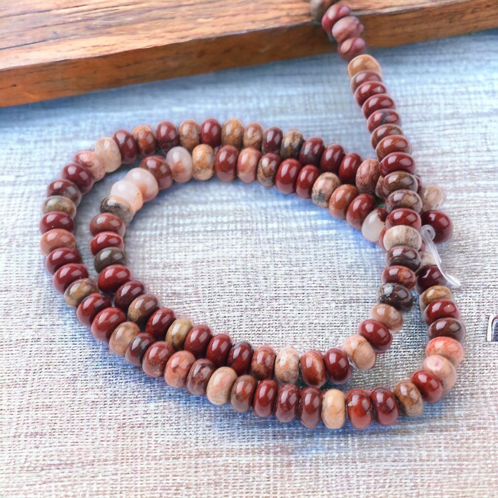 Roter Jaspis Perlenstrang Rondelle 6 x 4 mm (ca. 94 Perlen / ca. 38 cm Länge)