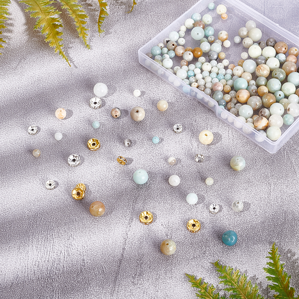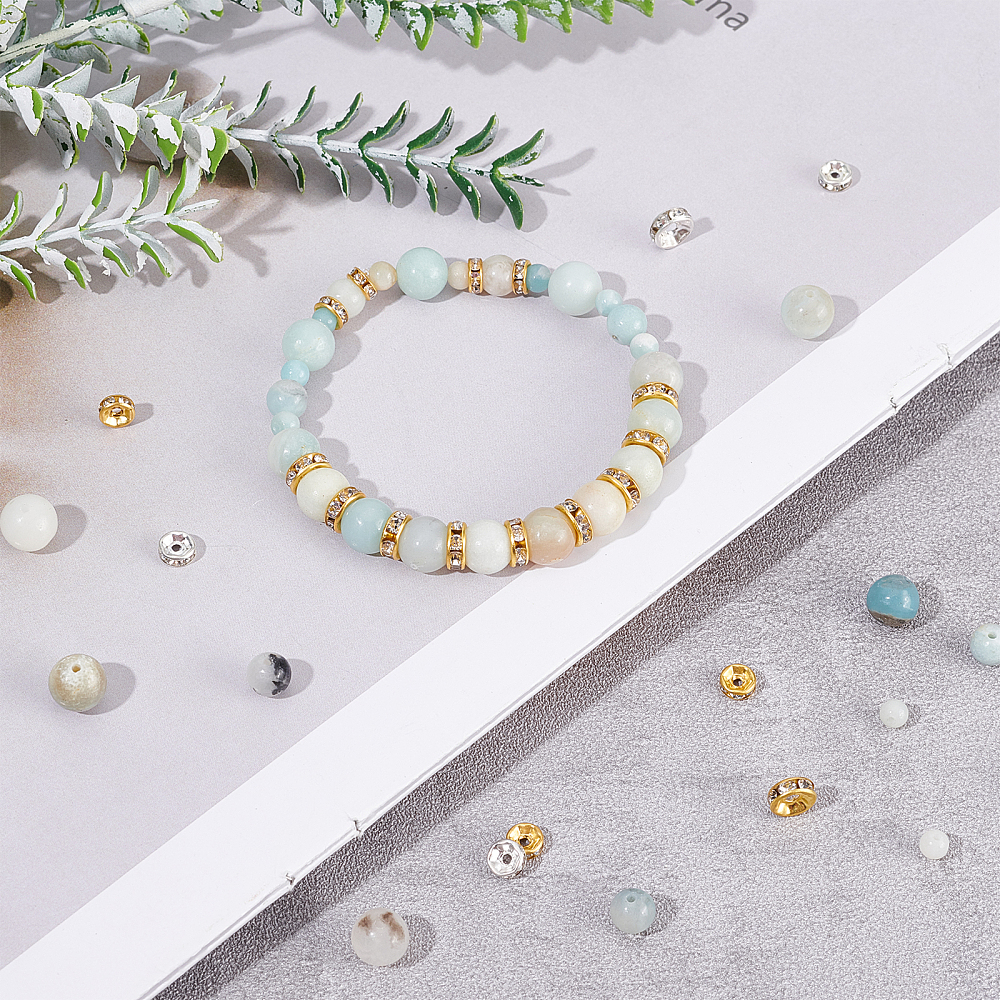 Schmuck Bastelset DIY Armband mit Amazonit Perlen und Eisen-Strass-Abstandsperlen
