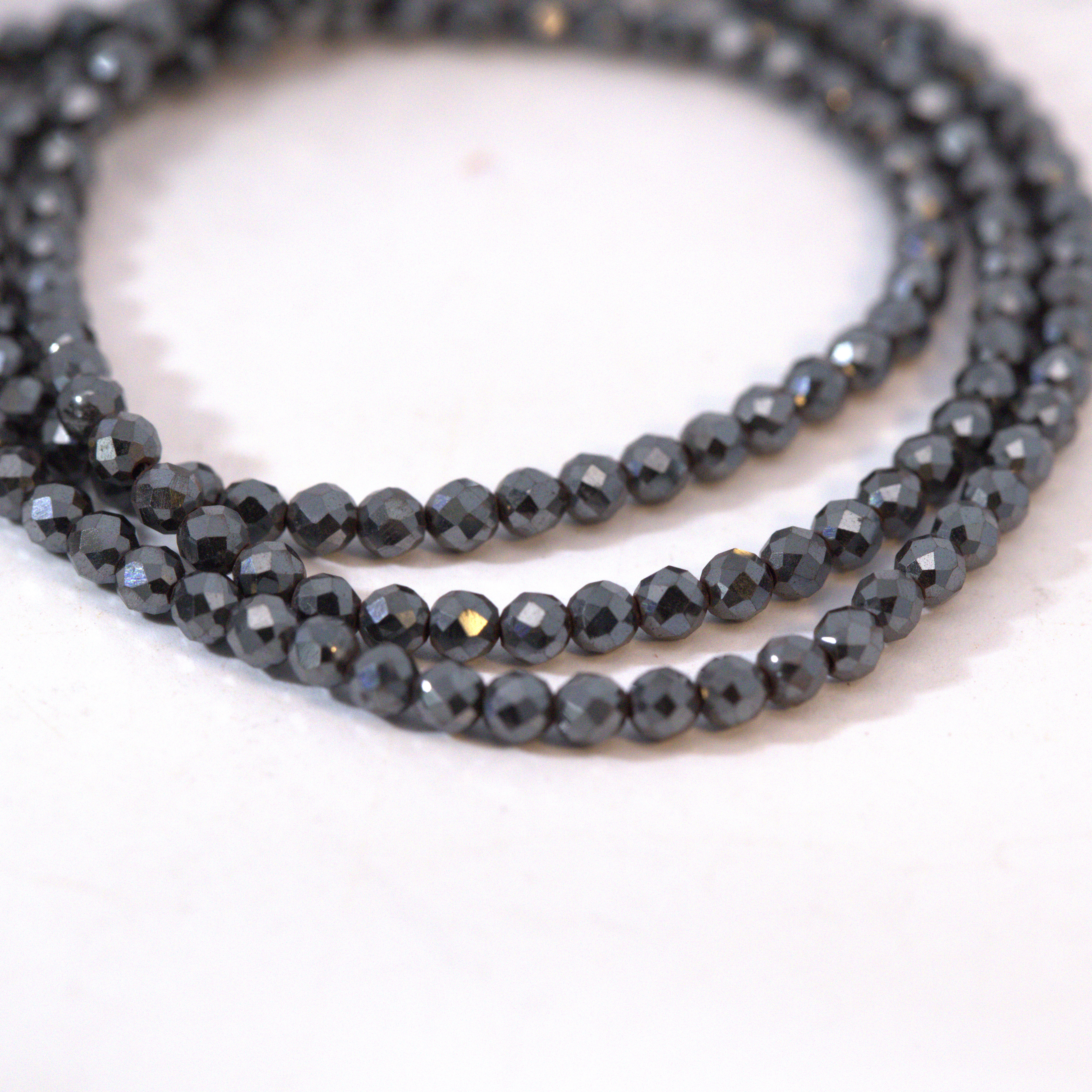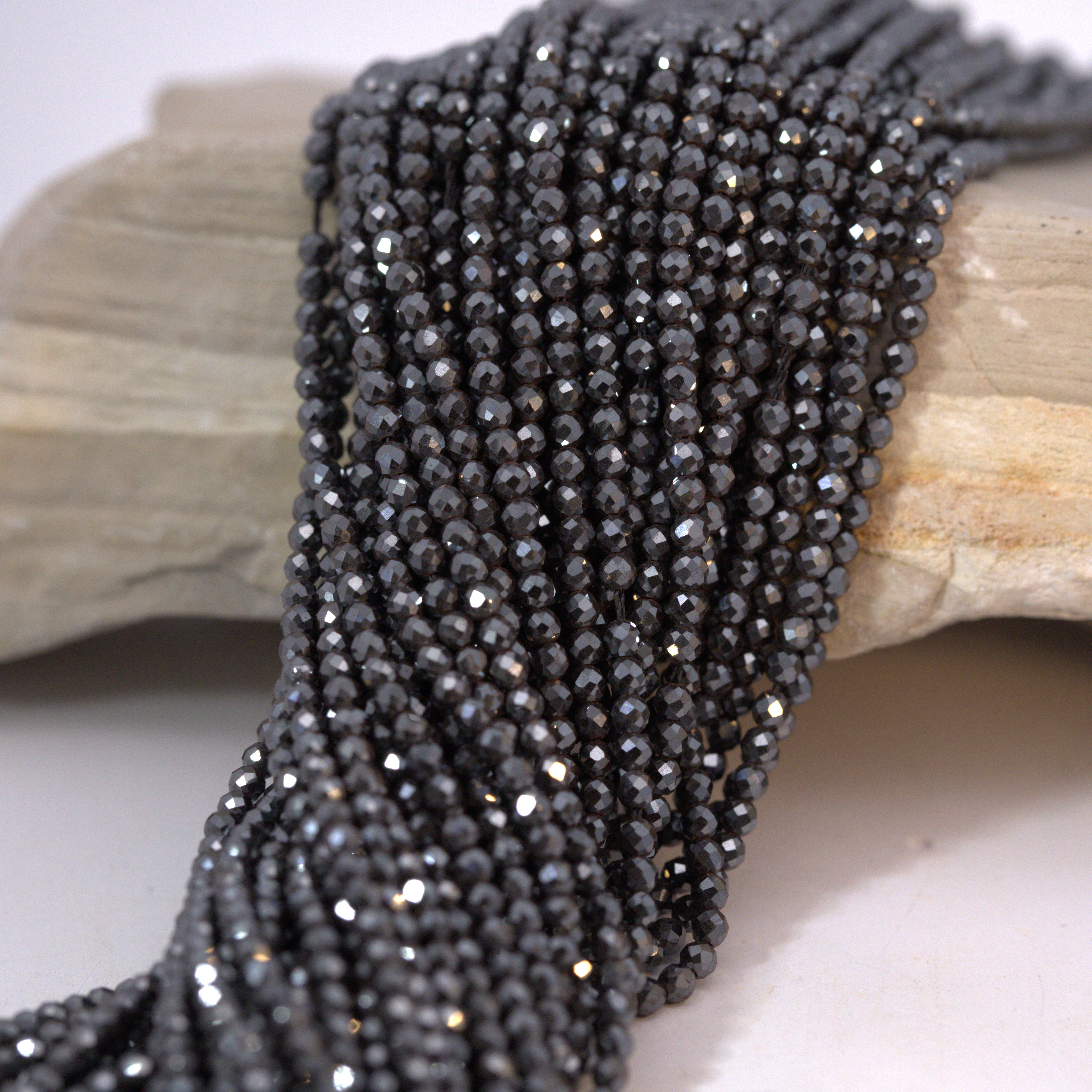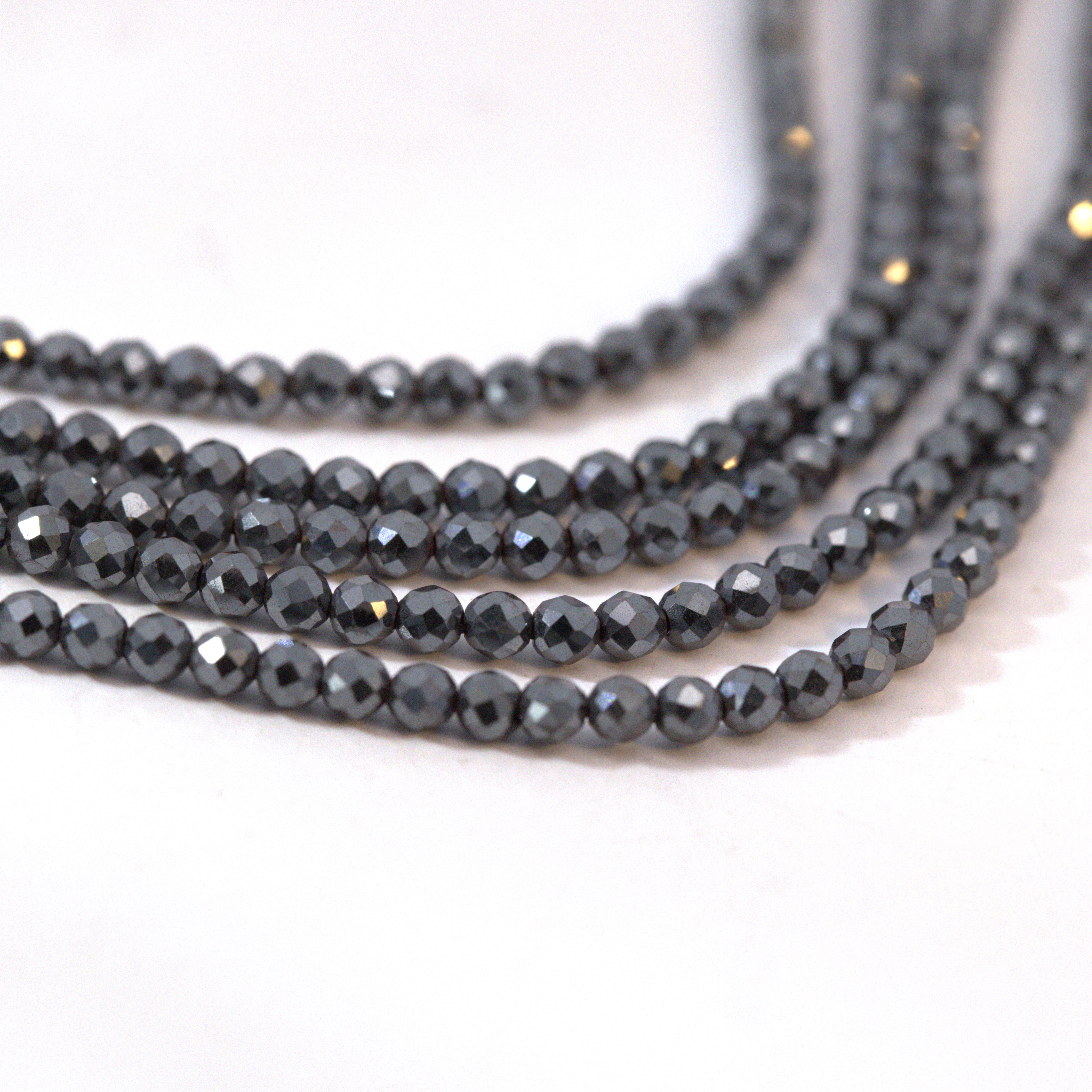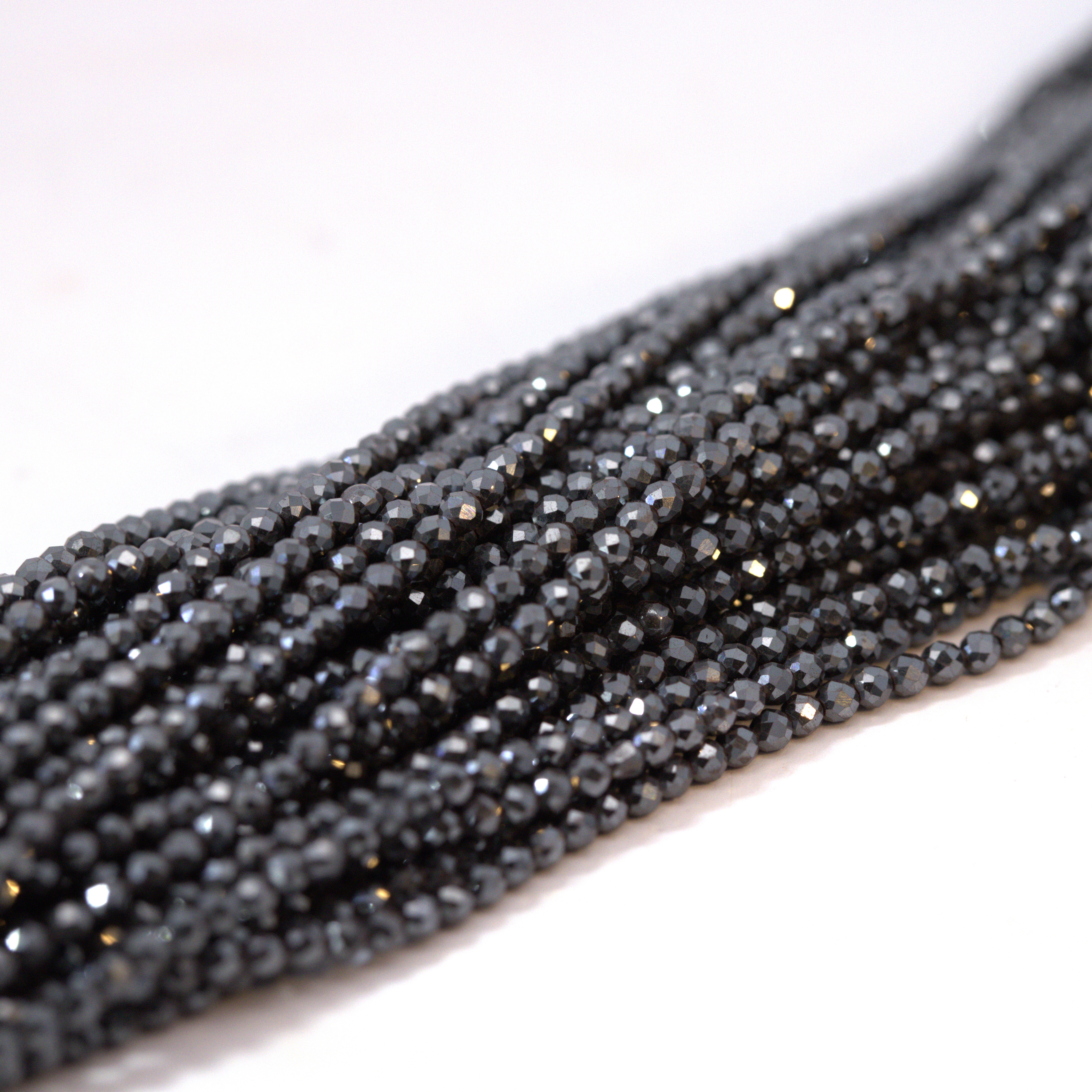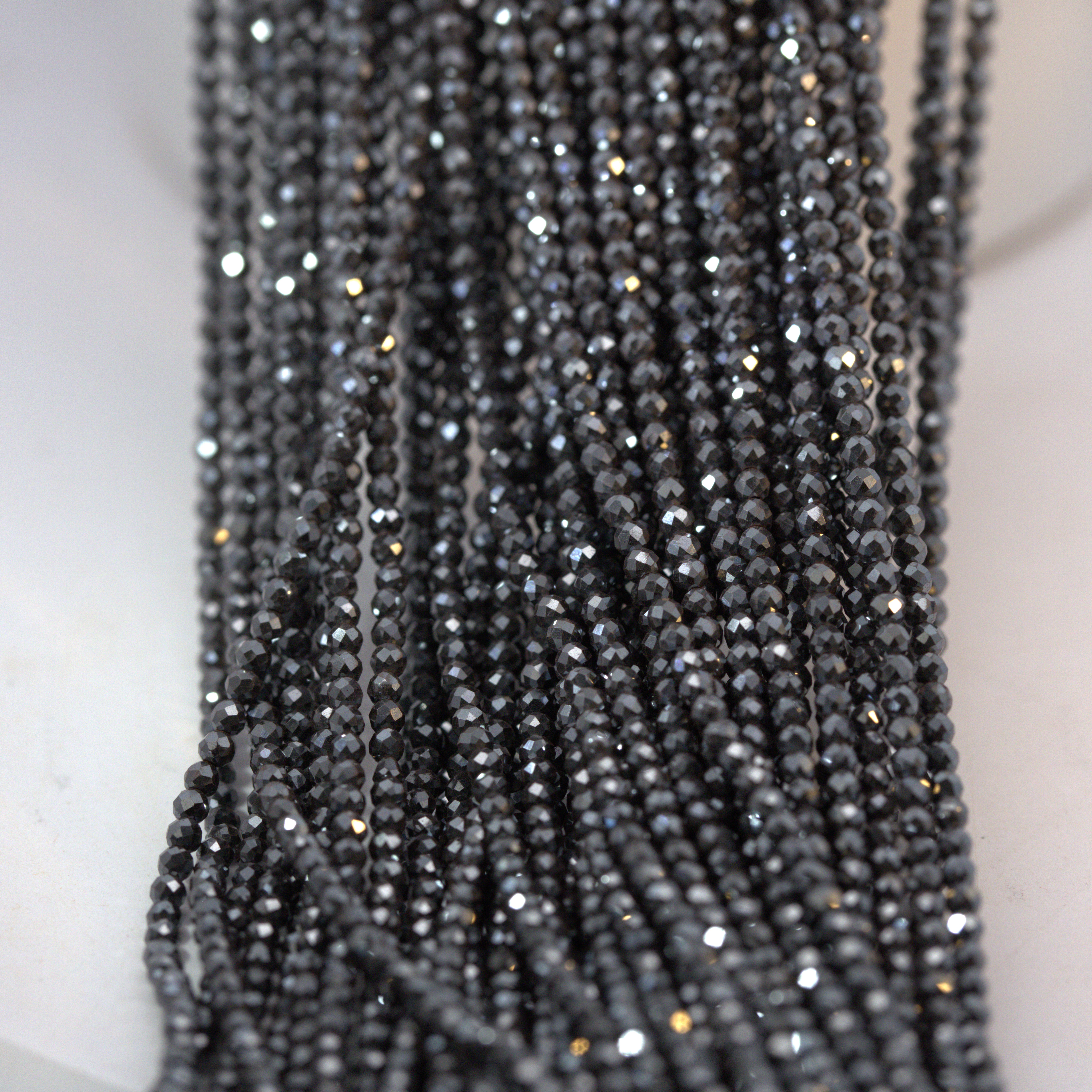 Schwarze Glasschliffperlen 2 mm facettiert (ca. 39 cm Länge)