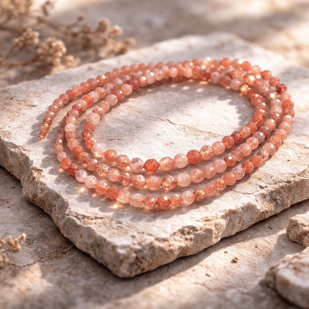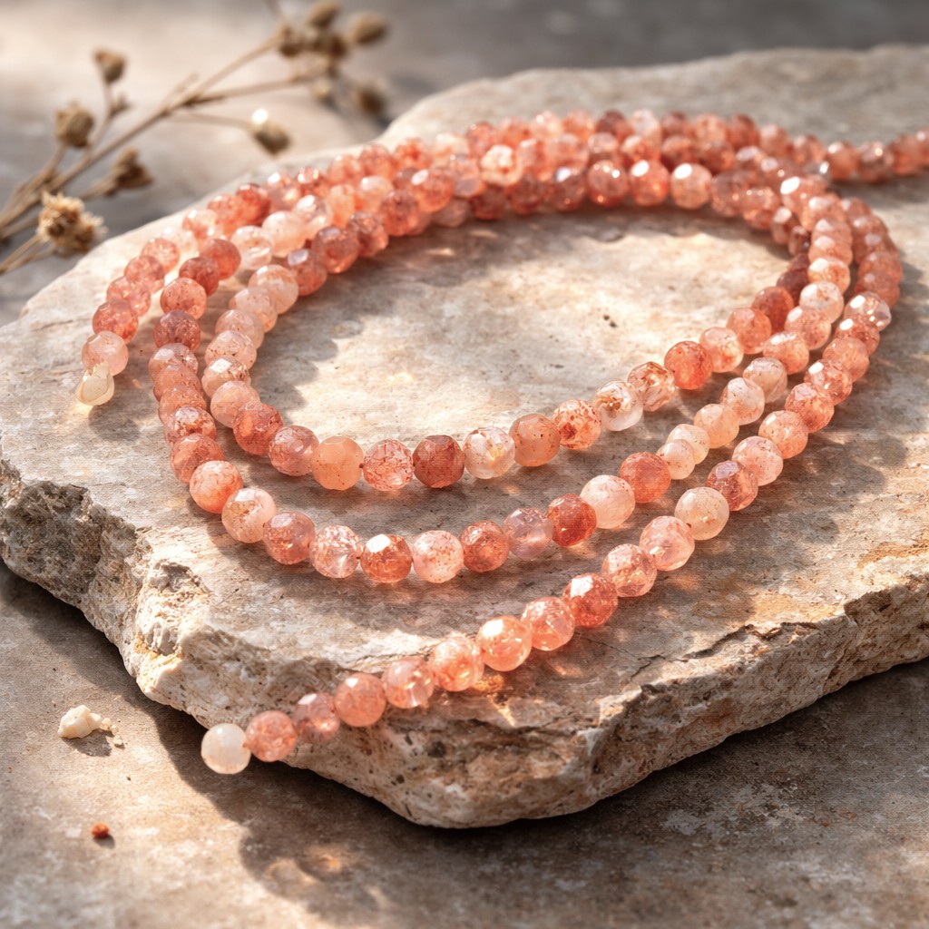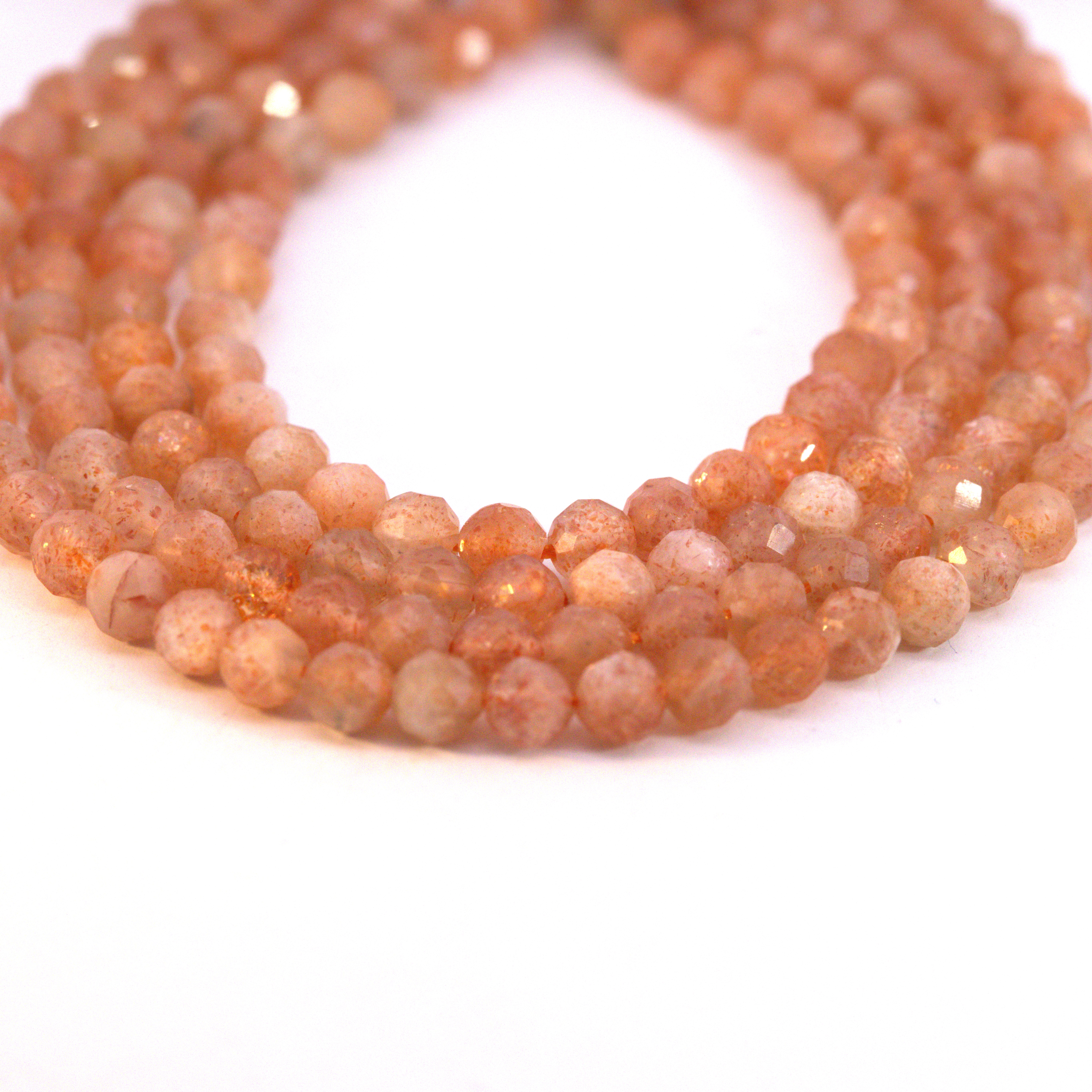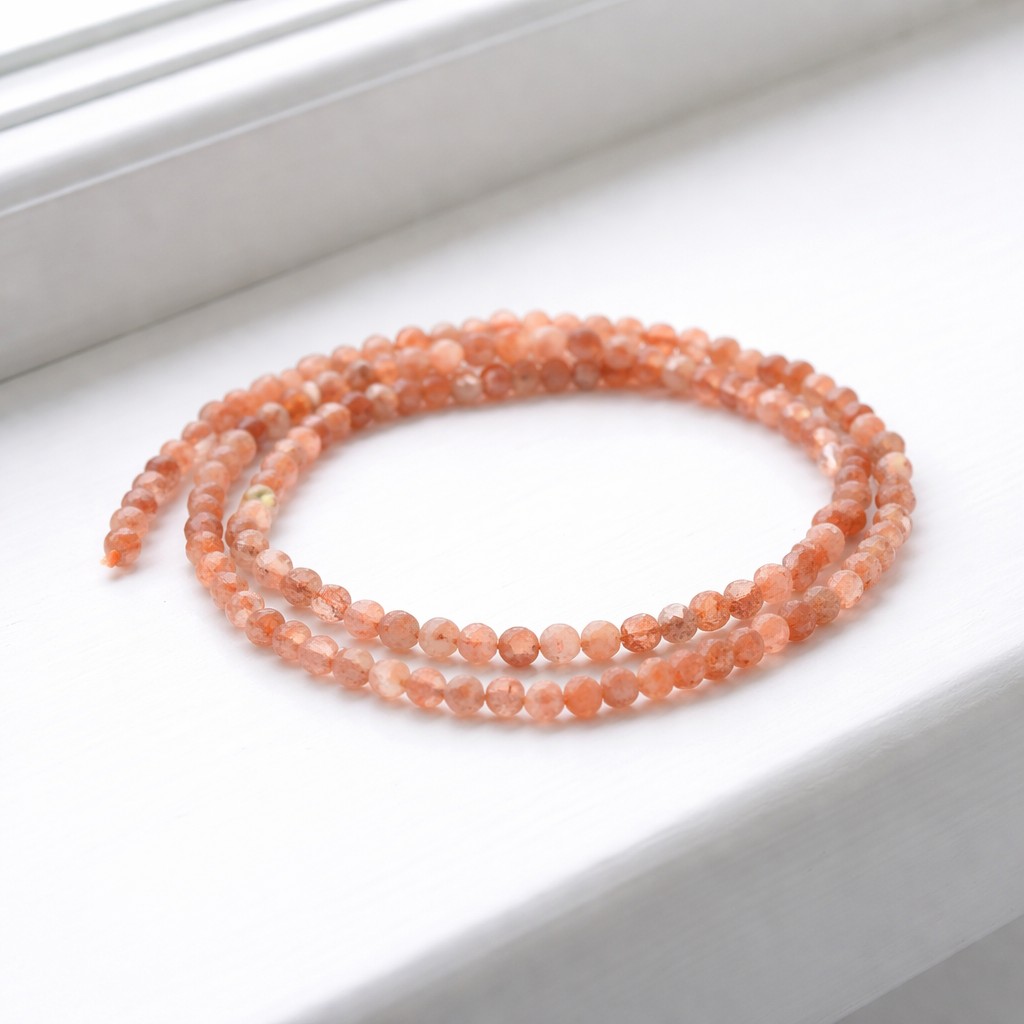 Produktinformationen "Sonnenstein Perlenstrang 4 mm facettiert (ca. 100 Perlen / ca. 39 cm Länge)"